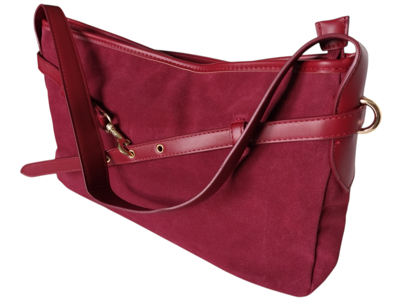 Torebka Damska Zamszowa, Modna Miejska Torba Shopper na Ramię, Czerwony