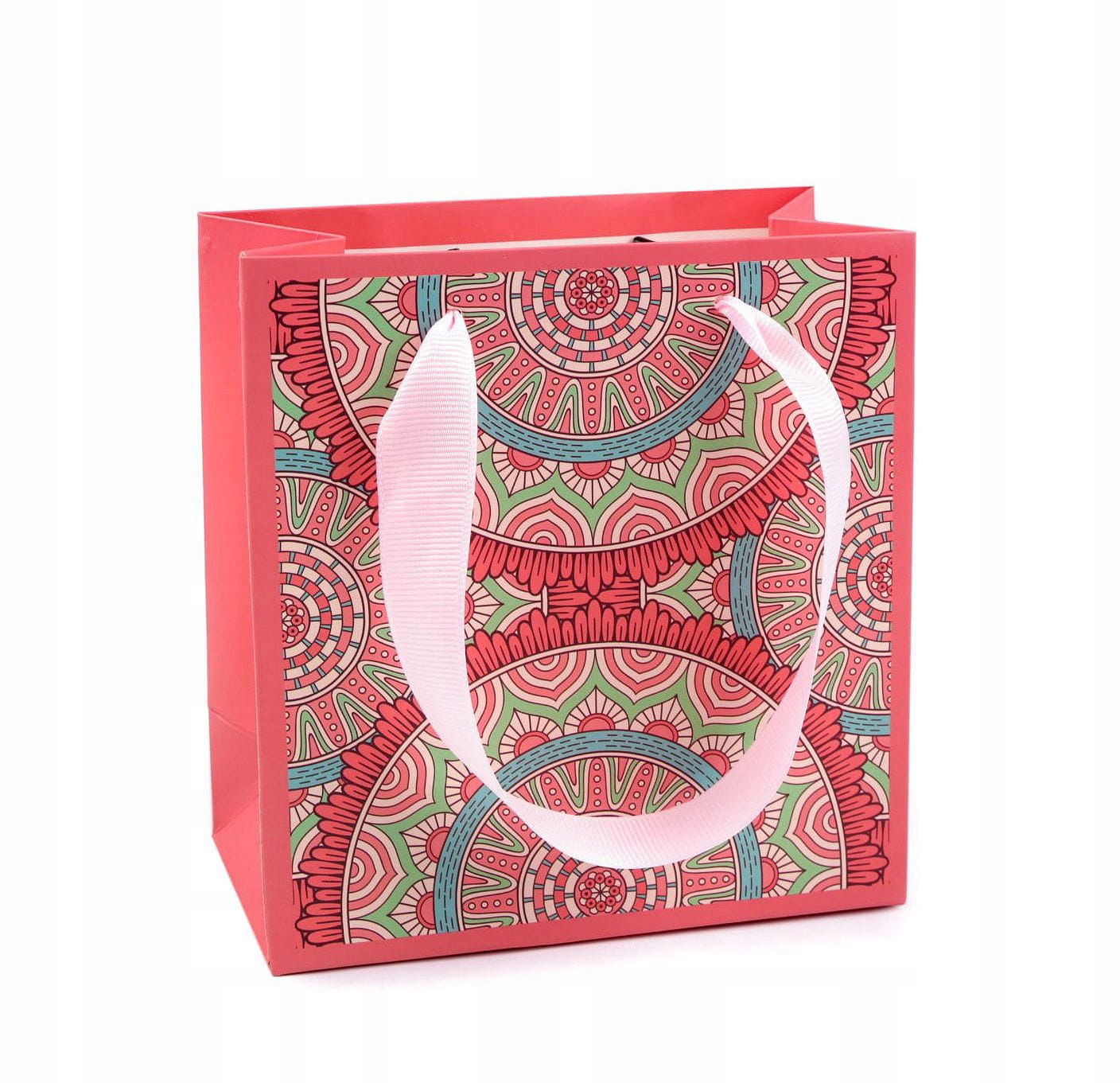 Mała torebka prezentowa z motywem folk wykonana jest z wysokiej jakości, mocnego papieru kredowego. Mandale zdobią przód i tył torby, nadając jej unikalny i artystyczny wygląd. Dzięki wstążkowemu uchu torbę wygodnie trzyma się w dłoni. Można ją wykorzystać na każdą okazję, a także oszczędzi czas przy pakowaniu prezentów.