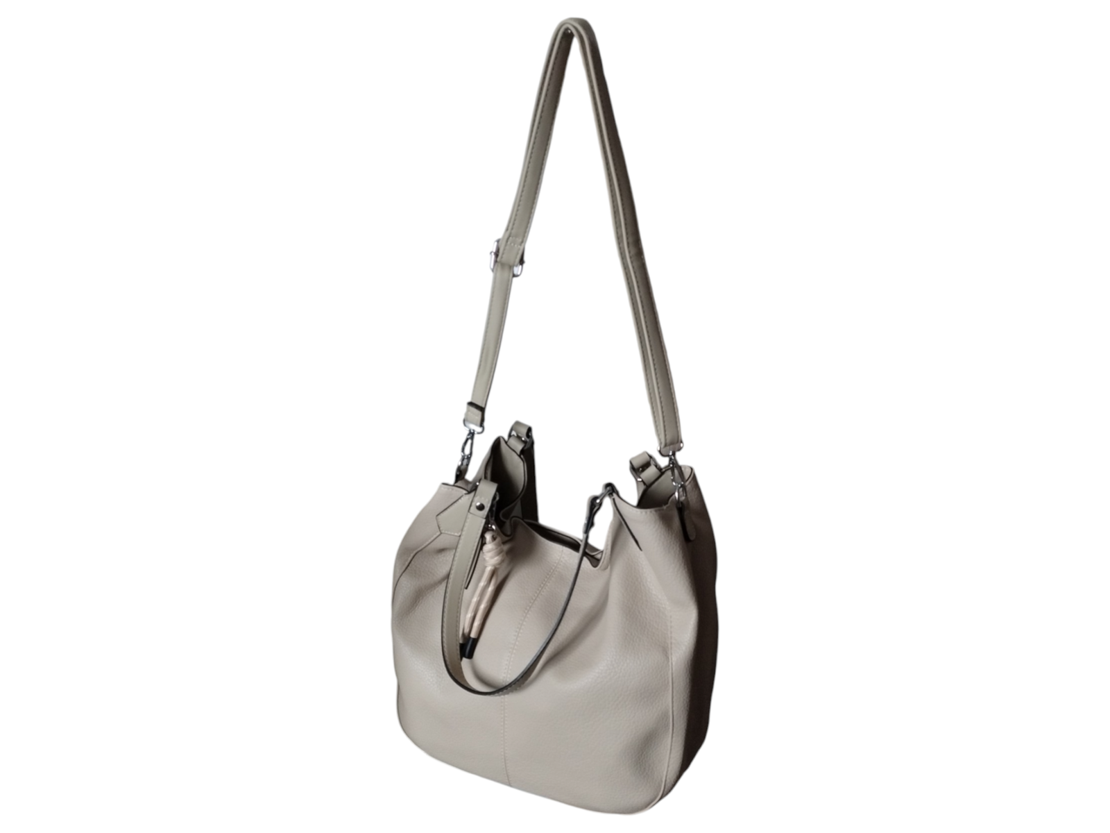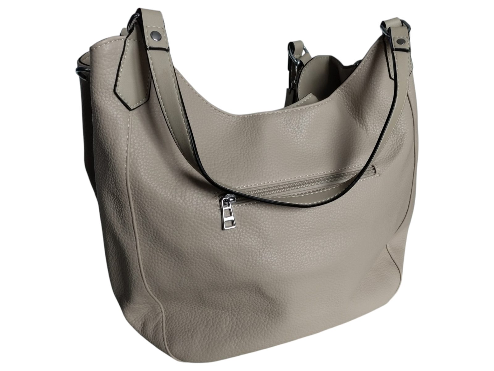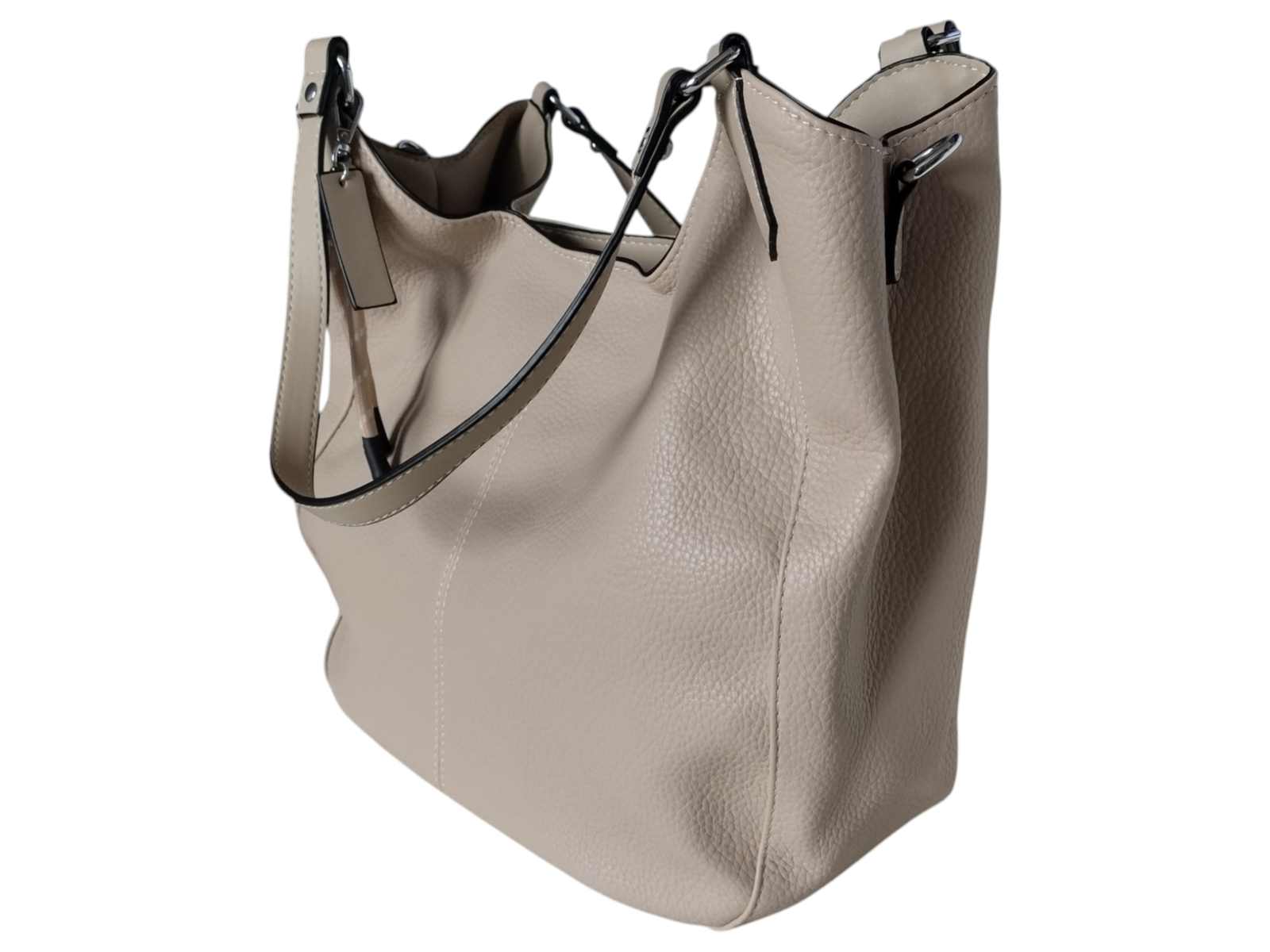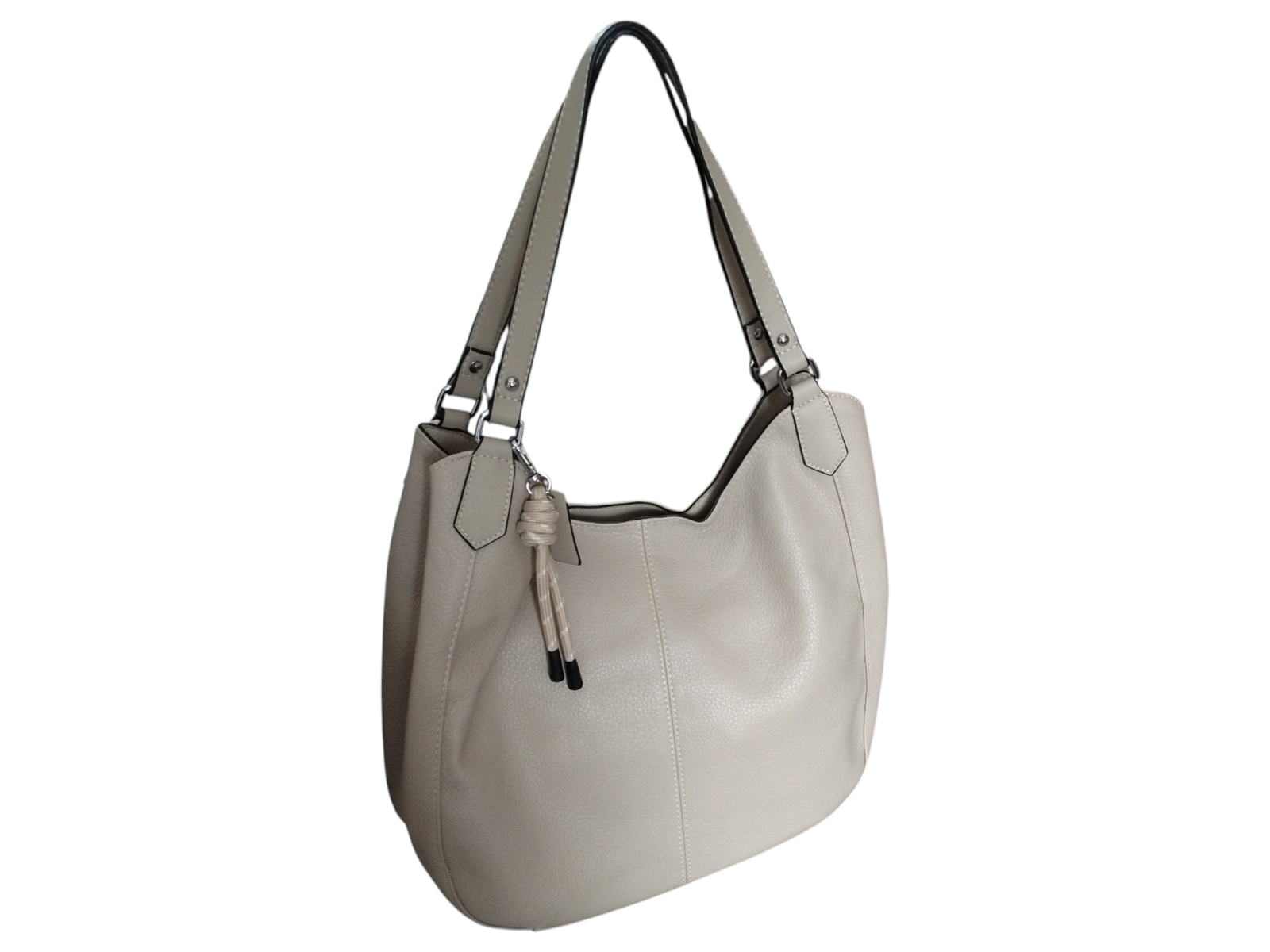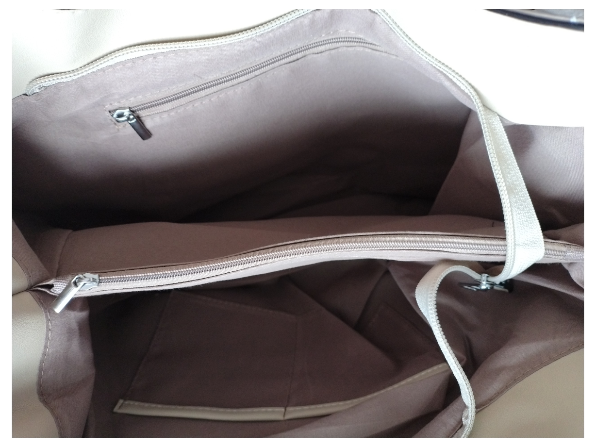 Torebka Shopper Damska z Przegrodą, Duża Praktyczna Torba na Ramię, Beż