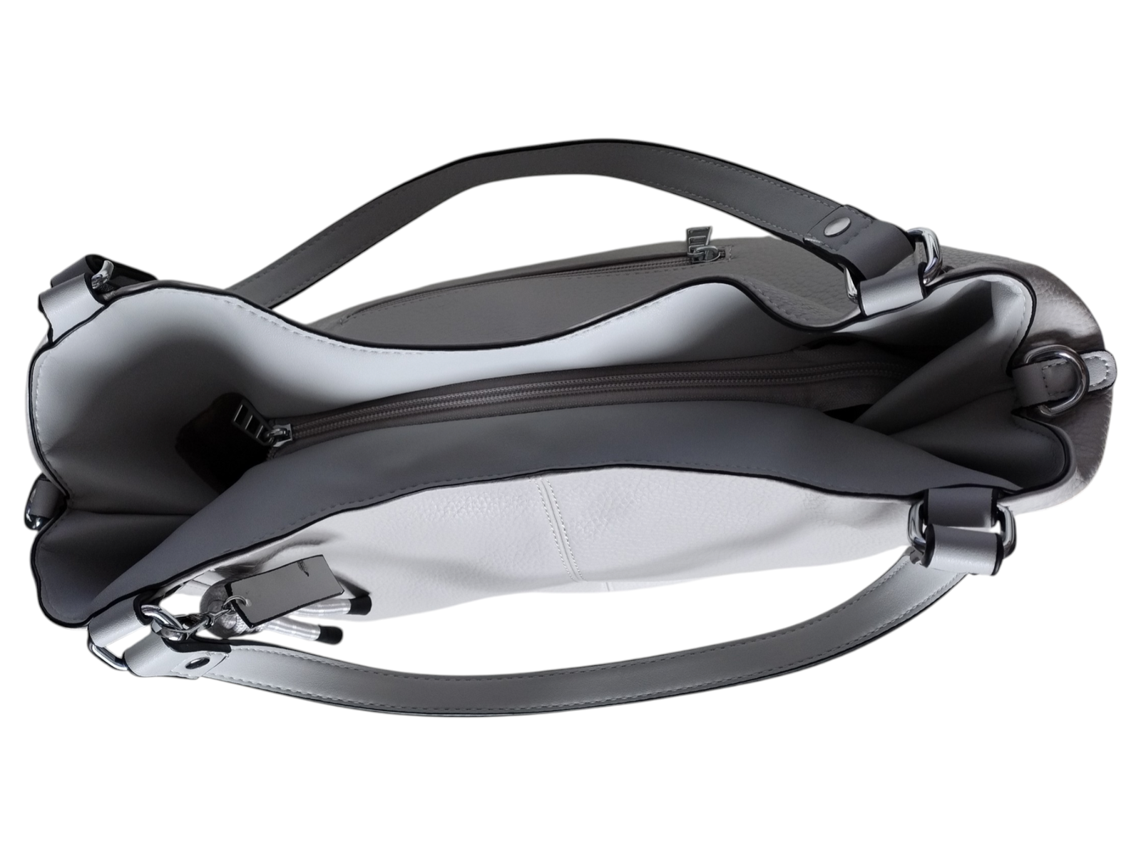Torebka Shopper Damska z Przegrodą, Praktyczna Duża Torba na Ramię, Szary