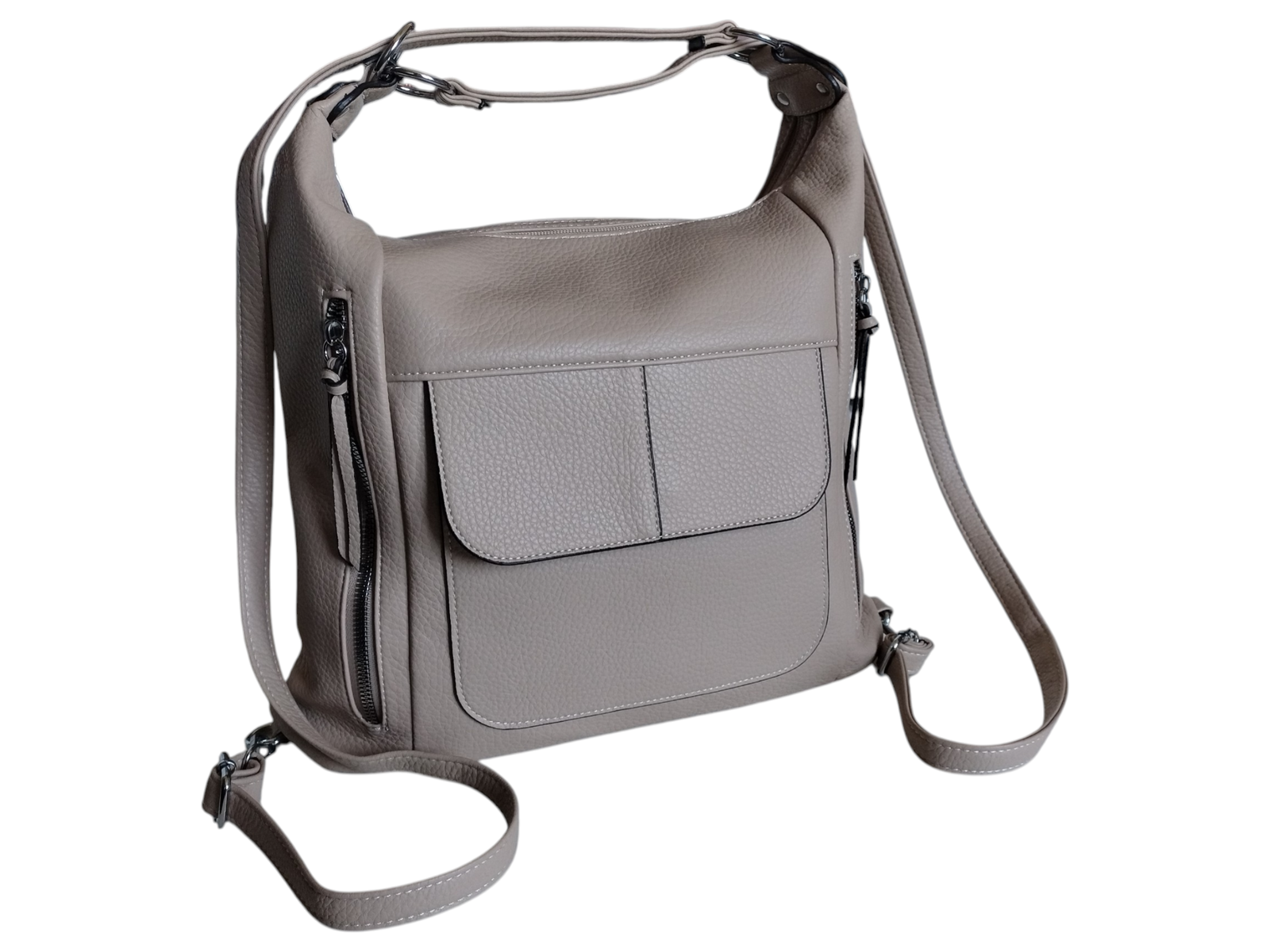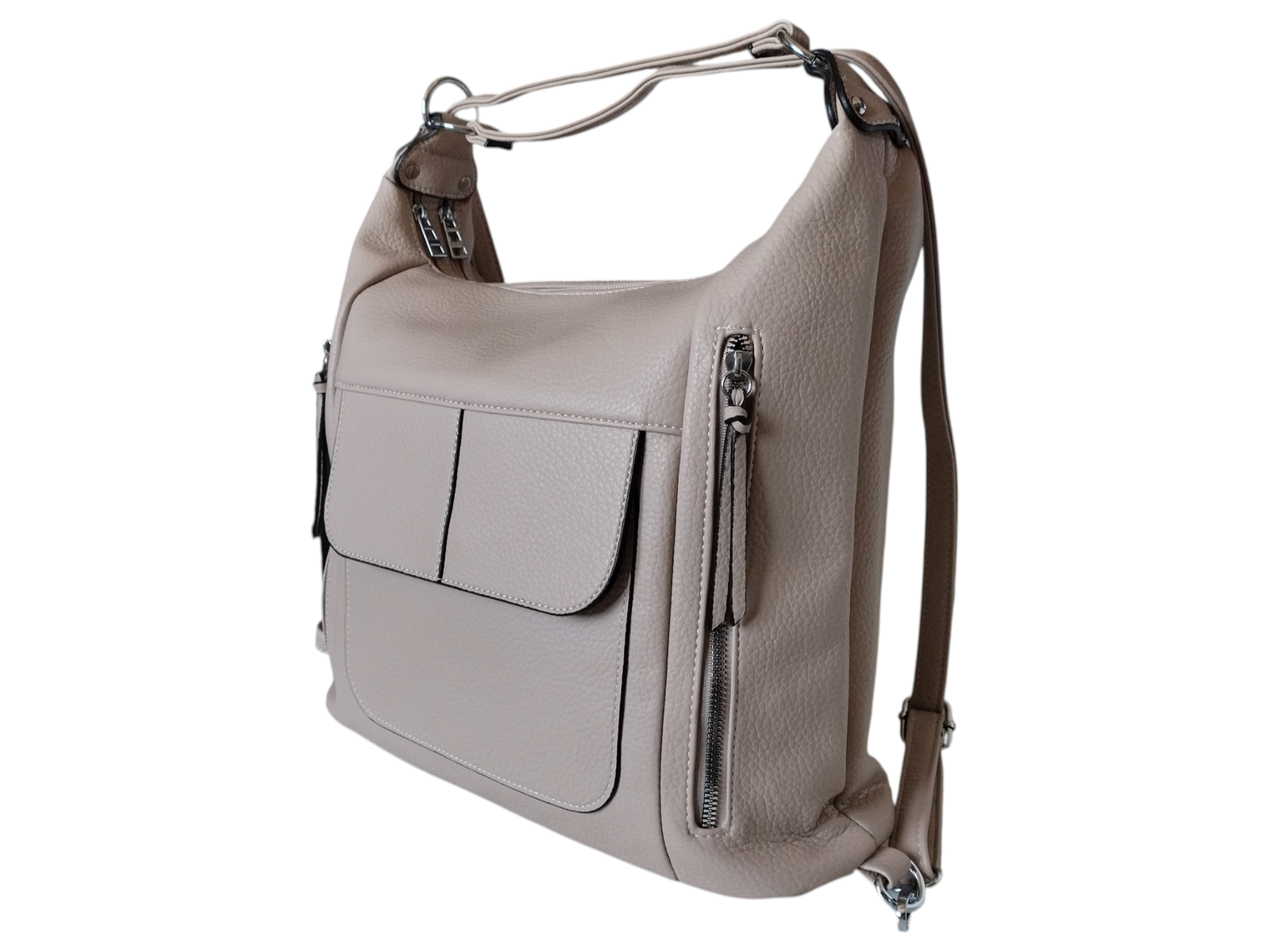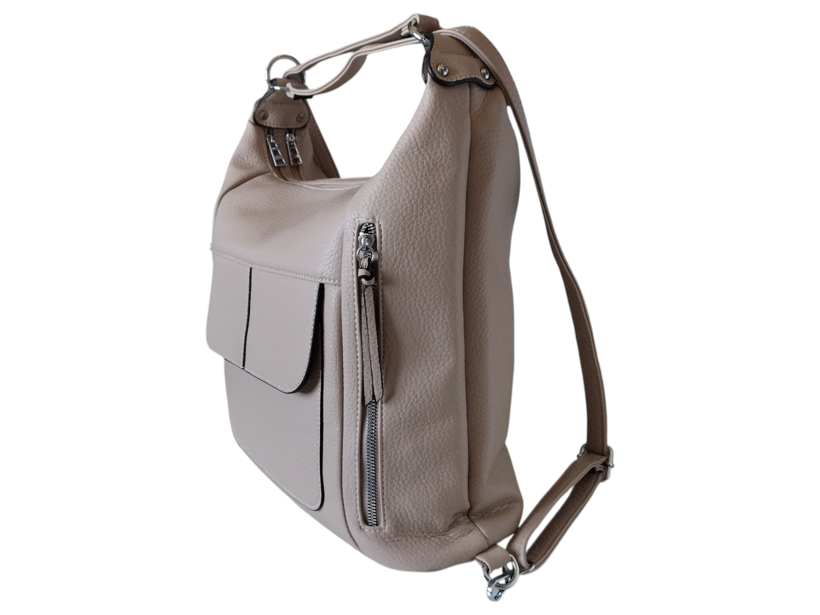 Torebko-Plecak Damski, Miejska Torebka Listonoszka Na Ramię, Beżowy
