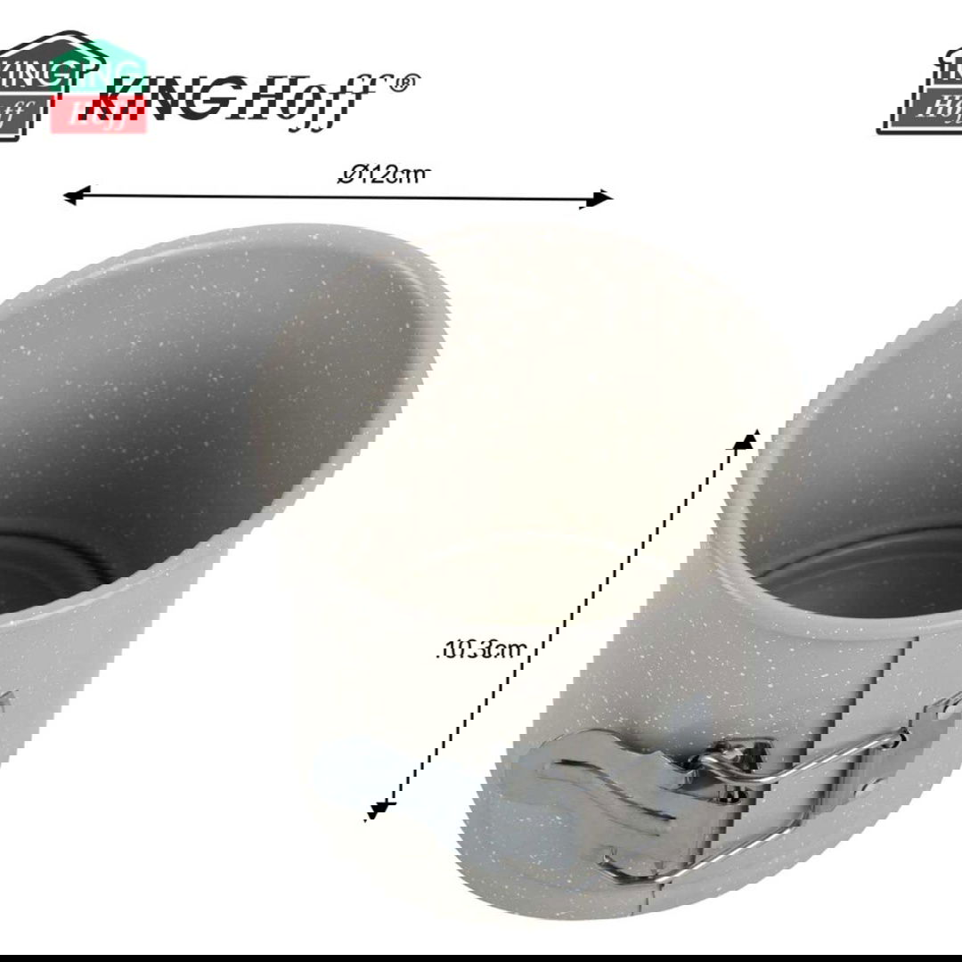 KingHoff KH-1979 to solidna, okrągła forma do pieczenia o średnicy 12 cm, zaprojektowana z myślą zarówno o pasjonatach domowych wypieków, jak i o profesjonalnych cukiernikach. Dzięki wysokiej, 10,3-centymetrowej konstrukcji pozwala przygotować idealnie uformowane torty, serniki i rozmaite desery warstwowe. Wykonana ze stali węglowej i pokryta powłoką nieprzywierającą MARBLE, gwarantuje równomierne pieczenie i łatwe wyjmowanie gotowego wypieku.