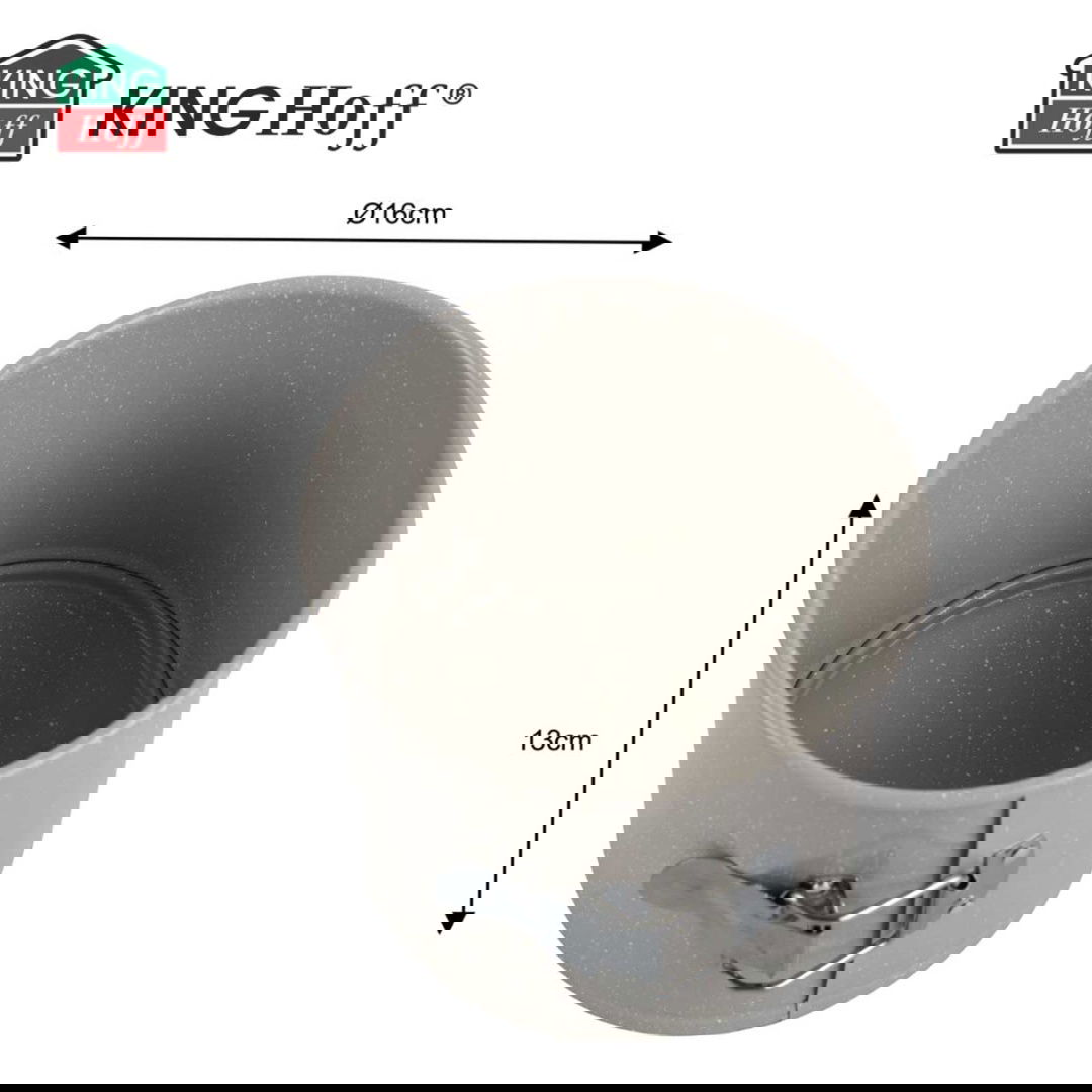 KingHoff KH-1980 to wysoka, solidna forma do pieczenia tortów o średnicy 16 cm i imponującej wysokości 13 cm. Zaprojektowana dla miłośników efektownych, wysokich wypieków, świetnie sprawdzi się zarówno w domowej kuchni, jak i w profesjonalnej cukierni. Wykonana ze stali węglowej i pokryta powłoką nieprzywierającą MARBLE, gwarantuje idealne wypieki bez przywierania i bez stresu przy wyjmowaniu ciasta.