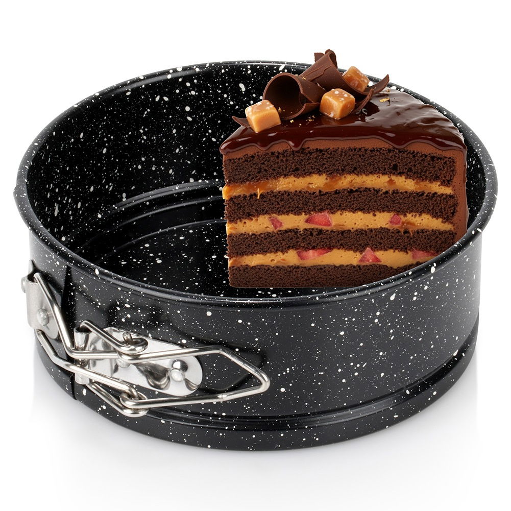Mała, okrągła forma do pieczenia ciast z granitową powłoką. Brzegi tortownicy są rozpinane. Forma nadaje się do piekarników gazowych oraz elektrycznych