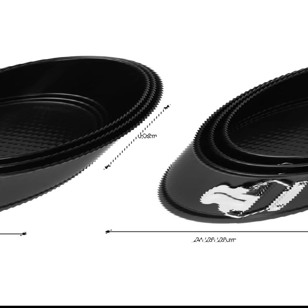 Formy pokryte powłoką nieprzywieralną, która ułatwia pieczenie Łatwe do umycia, zalecane mycie ręczne Każda tortownica wyposażona jest w rozpinany rant, który umożliwia łatwe wyjmowanie ciasta bez ryzyka uszkodzenia jego kształtu. Mechanizm zamykający jest prosty i bezpieczny w użyciu, co zapewnia wygodę, nawet przy wypiekach, które wymagają szczególnej ostrożności podczas wyjmowania, takich jak serniki, biszkopty czy ciasta warstwowe. Formy te mają powierzchnię zapobiegającą przywieraniu, dzięki czemu ciasto nie przykleja się do boków i łatwo odchodzi od formy, co dodatkowo ułatwia mycie. Tortownice są uniwersalne – można używać ich do pieczenia różnego rodzaju ciast, tortów i deserów, co czyni je praktycznym dodatkiem do kuchni każdego entuzjasty wypieków. Należy pamiętać o nie stosowaniu ostrych przyborów aby zapobiec zarysowaniom na powłoce nieprzywieralnej.