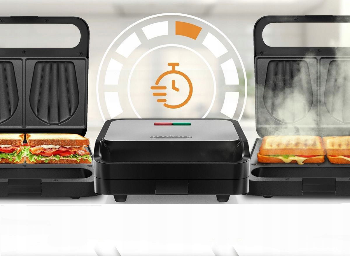 Dzięki powłoce Non-Stick i głębokim płytom w kształcie muszli przygotujesz złociste, chrupiące tosty XXL, które zawsze smakują jak z ulubionej kawiarni.