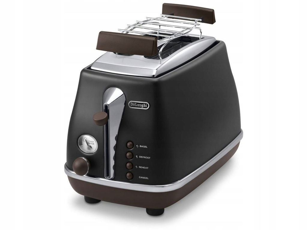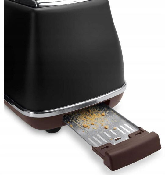 Seria Icona Vintage zachwycająca matowym wykończeniem w kolorze brązu pozwala tchnąć nowe życie w serce Twojego domu. Dwukromkowy toster CTOV2103.BK z serii Icona Vintage urzeka nie tylko wzornictwem, ale przede wszystkim funkcjonalnością.