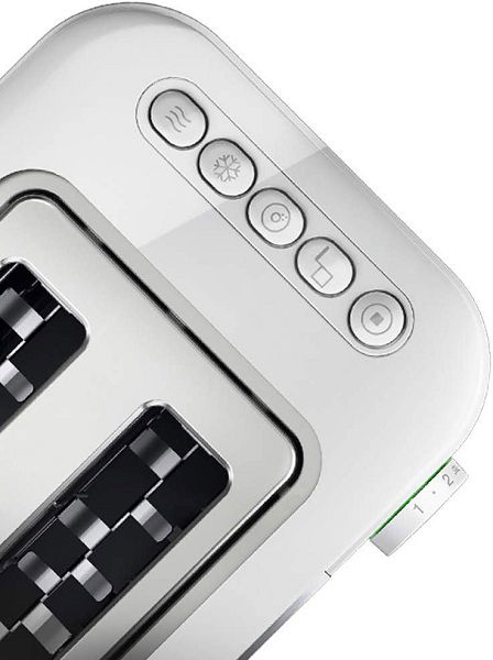 Funkcje podgrzewania, rozmrażania i zatrzymania opiekania możliwe są do ustawienia na górnej części tostera. Elementy sterujące funkcją podnoszenia pieczywa oraz kontrolujące stopnień zarumienienia znajdują się z boku urządzenia.