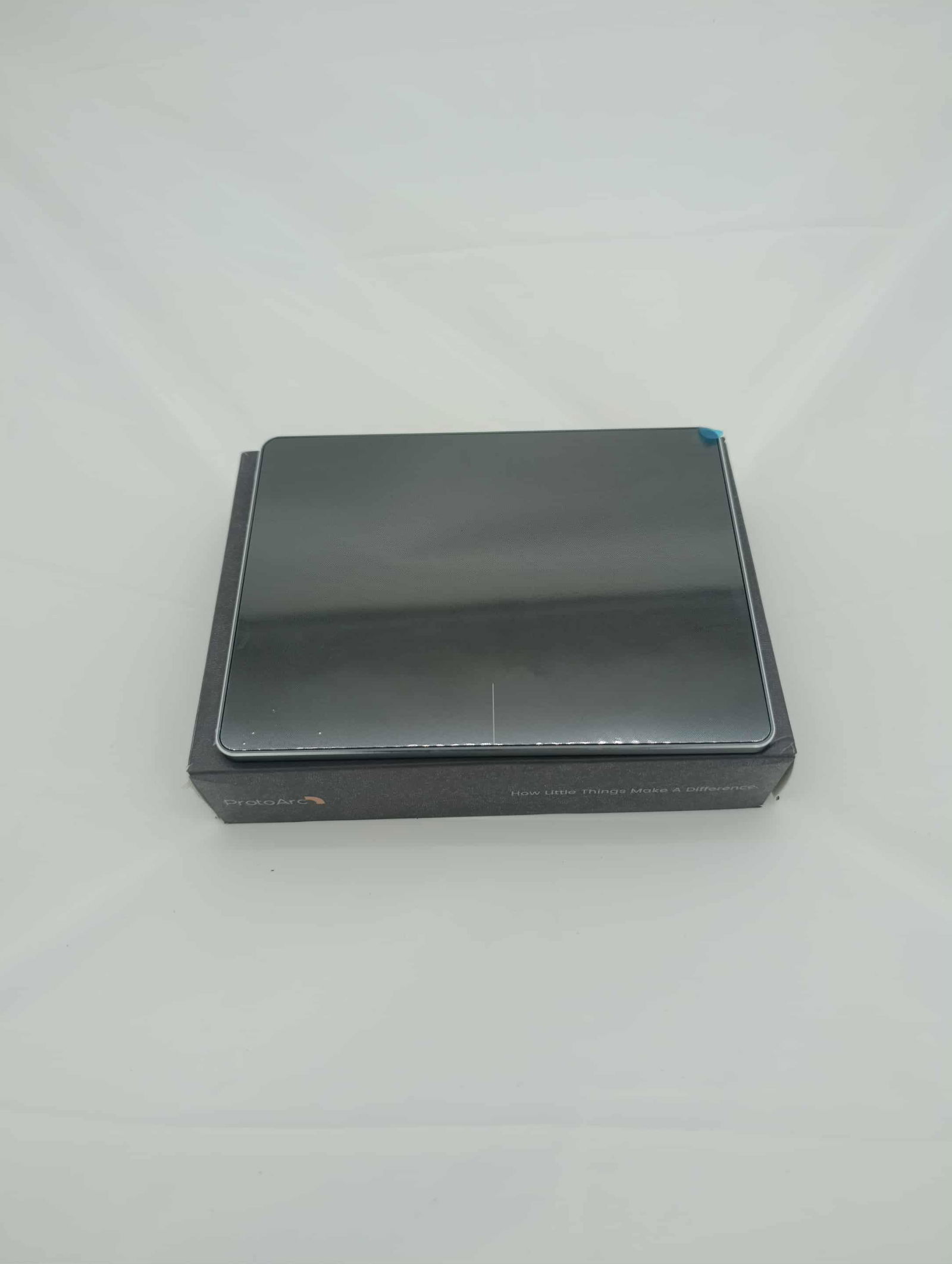 Ultra cienki metalowy panel dotykowy o wymiarach 16,3 x 12,2 x 1 cm.