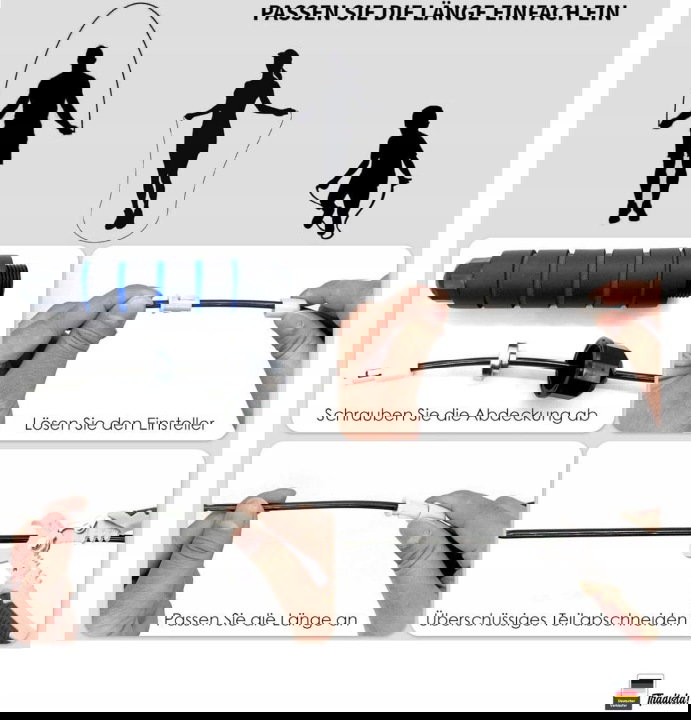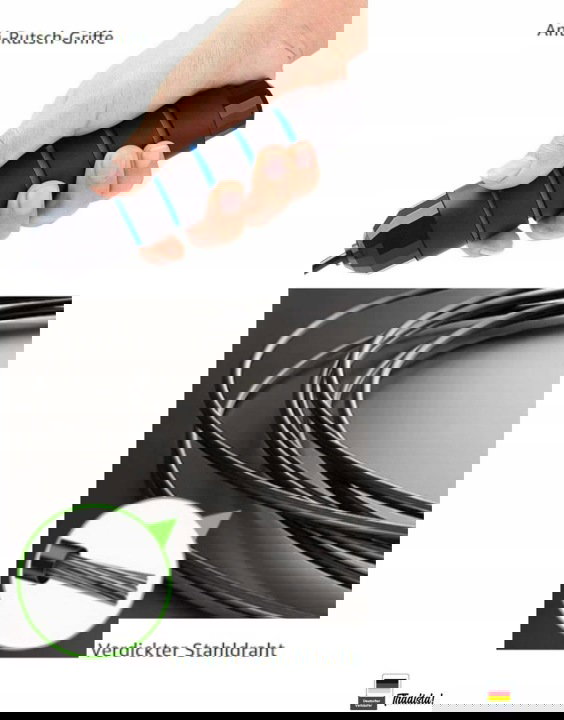 ⭐ Skakanka o długości 3 metrów z regulacją, wysokiej jakości PVC owinięta liną stalową, odporna na zużycie.