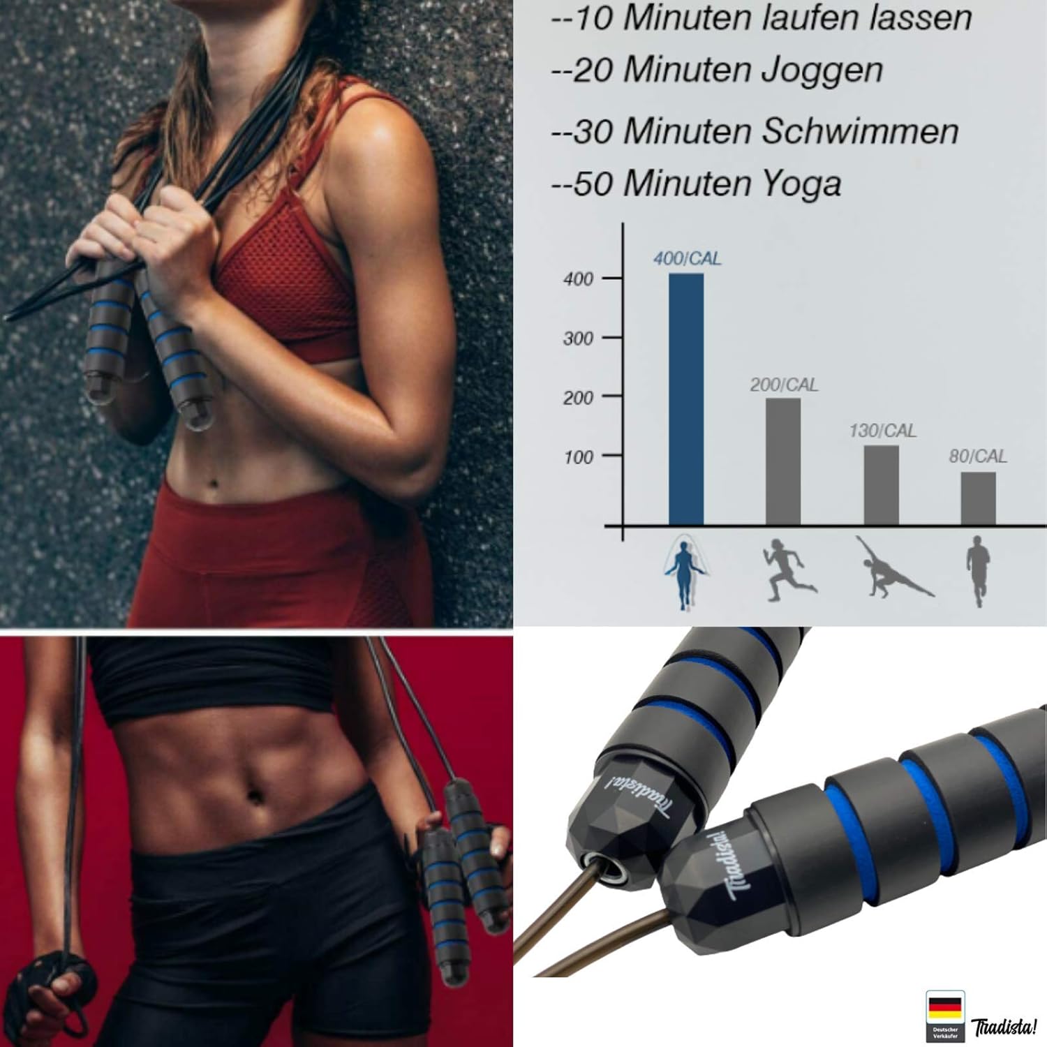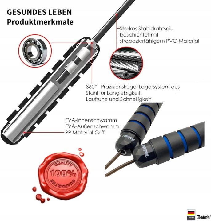 Tradista Skakanka fitness 3m z łożyskami i obciążnikami do treningu w domu