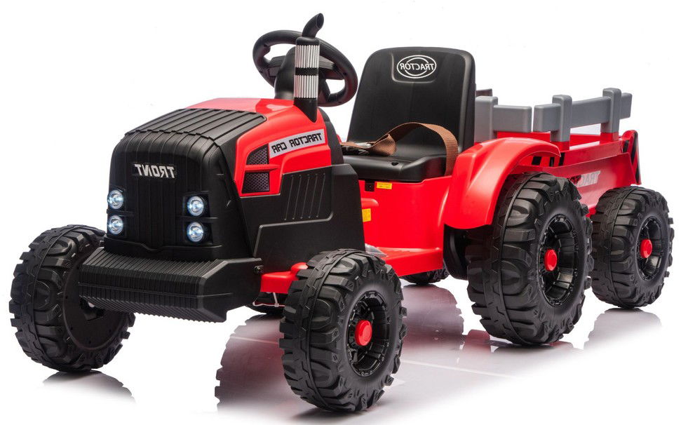 TRAKTOR NA AKUMULATOR Z PRZYCZEPĄ 2x120W 24V KOŁA EVA PILOT 2,4G CZERWONY