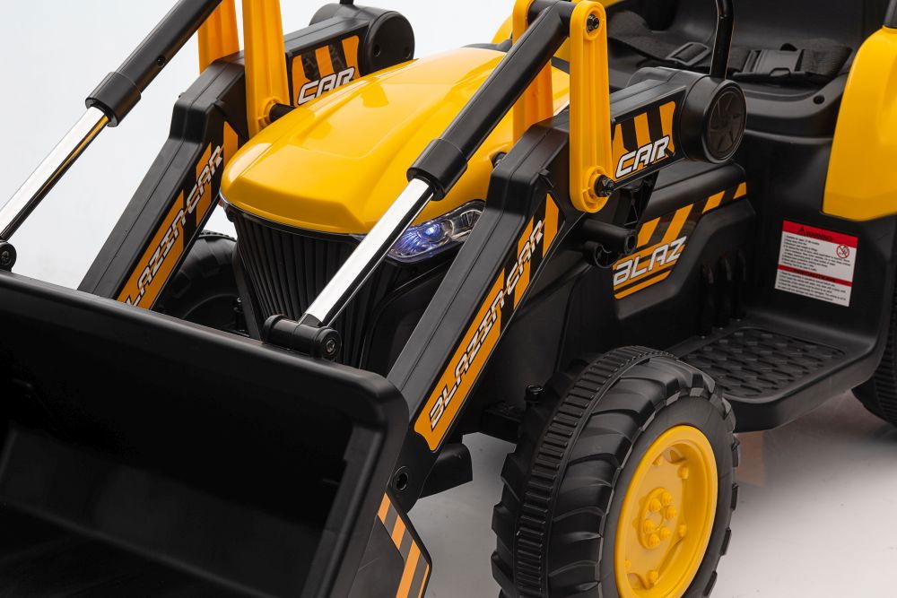 Traktor na Akumulator z Przyczepą i Łyżką 2x45W Aku 12V Ekoskóra Żółty