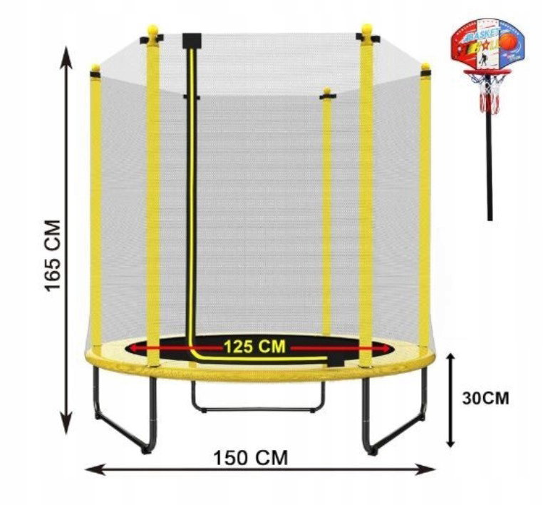 ✅Rozmiar 150 cm: Kompaktowa trampolina idealna do małych ogrodów i przestrzeni zewnętrznych.