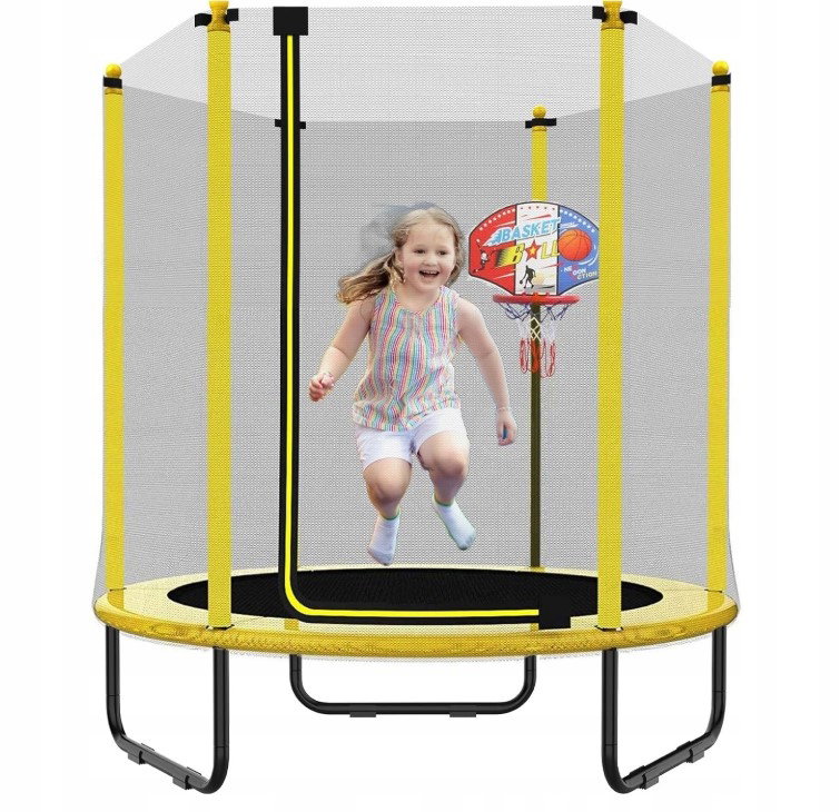 ✅Obudowa Zabezpieczająca: Siatka ochronna zapobiegająca wypadnięciu dziecka poza trampolinę.