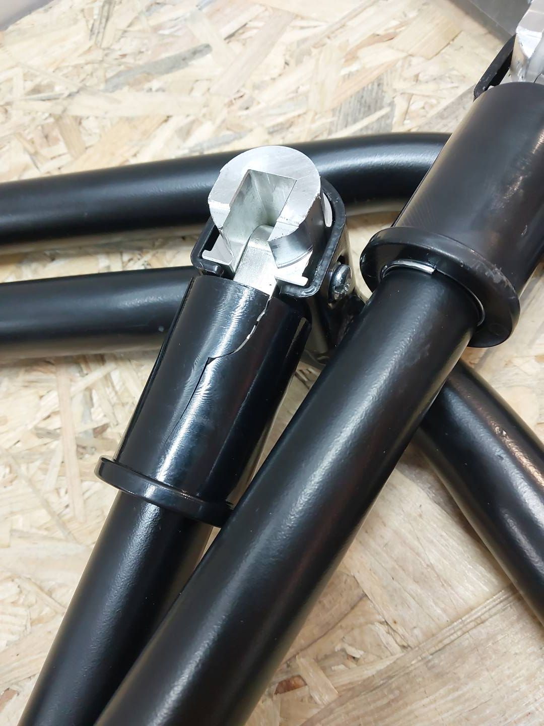 PRODUKT POSIADA USZKODZONE/POPĘKANE PLASTIKOWE OSŁONY BLOKADY NÓŻEK , WIDOCZNE NA ZDJĘCIACH. ZAPRASZAMY DO ZAPOZNANIA SIĘ ZE ZDJĘCIAMI RZECZYWISTYMI