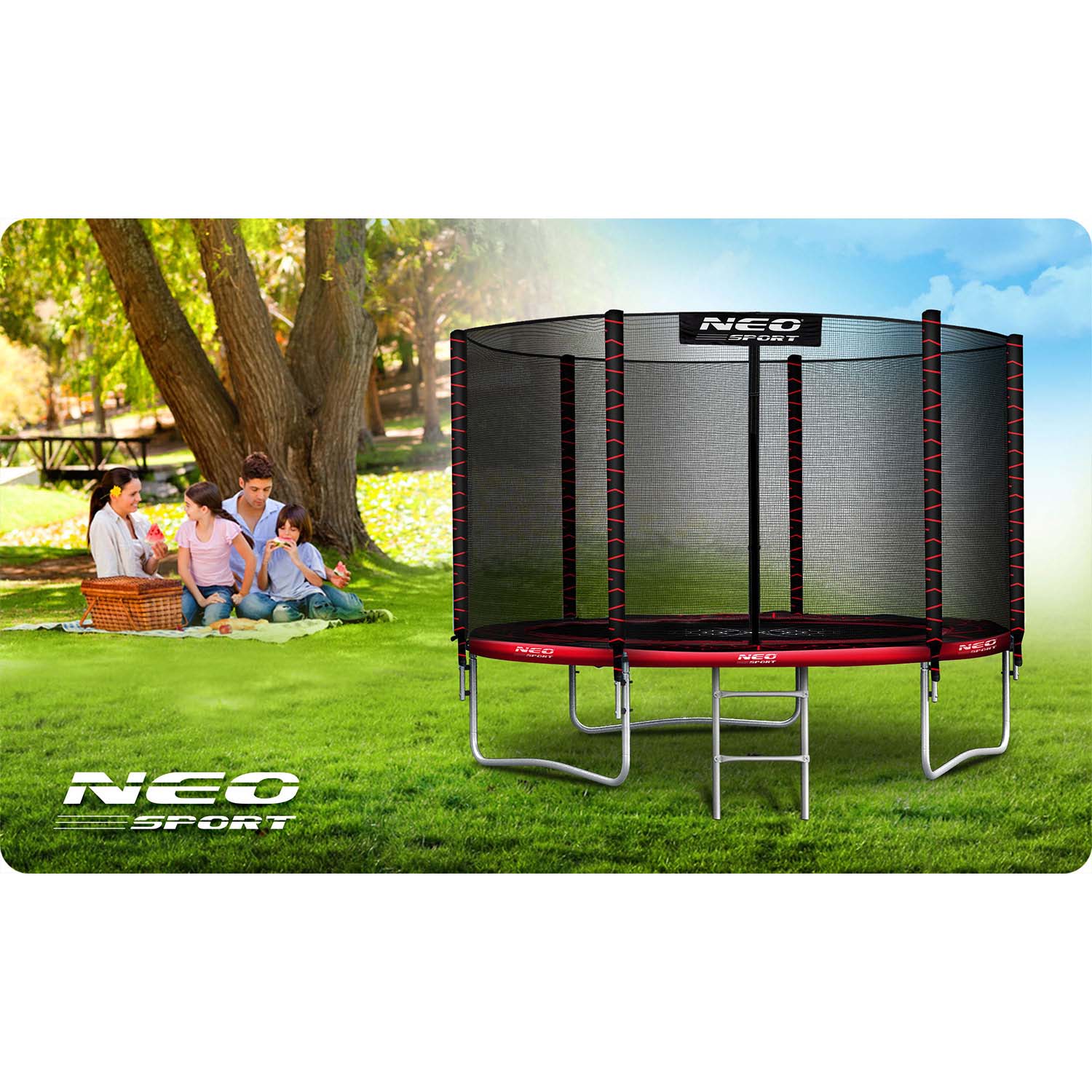 Trampolina ogrodowa 10ft/312cm z siatką zewnętrzną i drabinką Neo-Sport