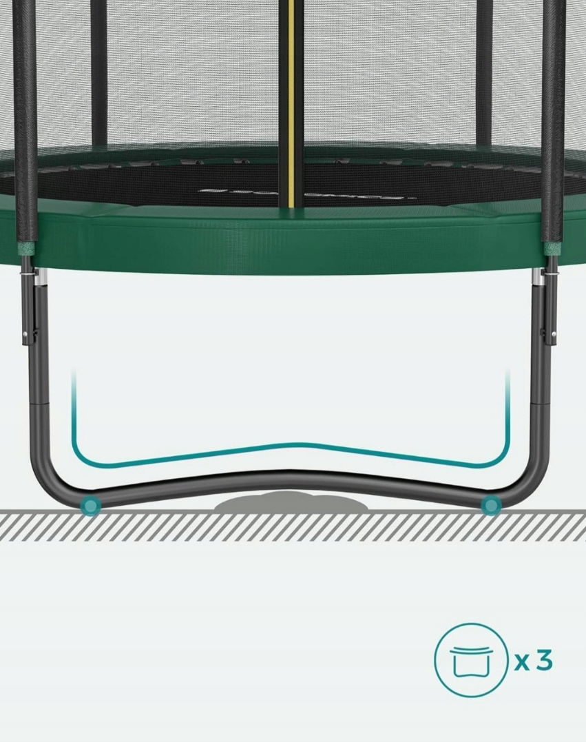 - ✴️ [Rama – solidna i trwała] Rama wykonana z odpornej na rdzę, ocynkowanej stali jest wytrzymała i trwała. Nogi w kształcie 3 W i połączenia w kształcie litery T zwiększają stabilność ramy. Solidna trampolina będzie Ci towarzyszyć przez wiele lat