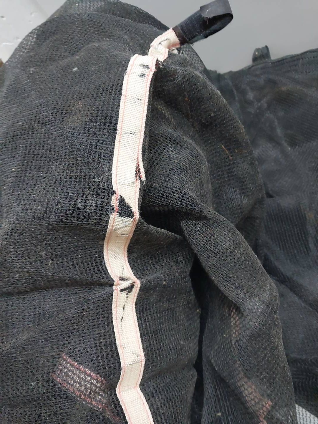 W siatce jest umieszczone wejście na trampolinę z zamkiem błyskawicznym.
