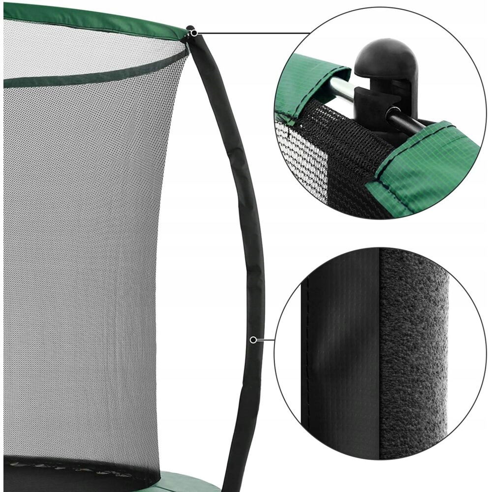 - ✴️ DOBRZE WYŚCIÓŁKA: Zapomnij o niebezpiecznych odsłoniętych sprężynach. Sprężyny tej trampoliny pokryte są wyściółką z pianki o grubości 15 mm, która również jest pokryta PVC. Zapewnia doskonałą ochronę przed promieniowaniem UV, wilgocią czy rdzą