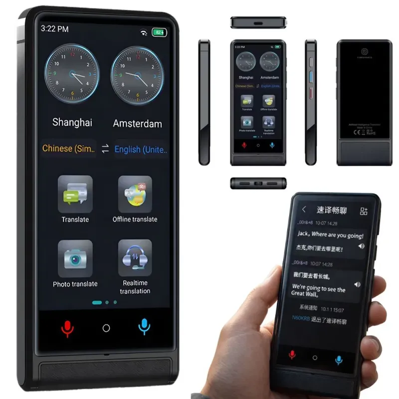 Urządzenie obsługuje tłumaczenie głosowe, tekstowe oraz ze zdjęć. Dzięki temu możesz swobodnie rozmawiać, tłumaczyć napisy, dokumenty lub znaki w obcym języku. Funkcja tłumaczenia w czasie rzeczywistym znacząco ułatwia komunikację.