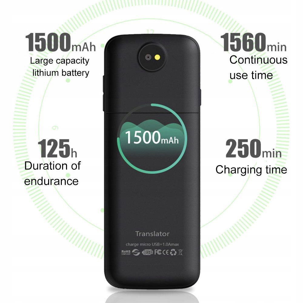 - Pojemny akumulator o pojemności 1200 mAh, zapewniający długotrwałe korzystanie z translatora.