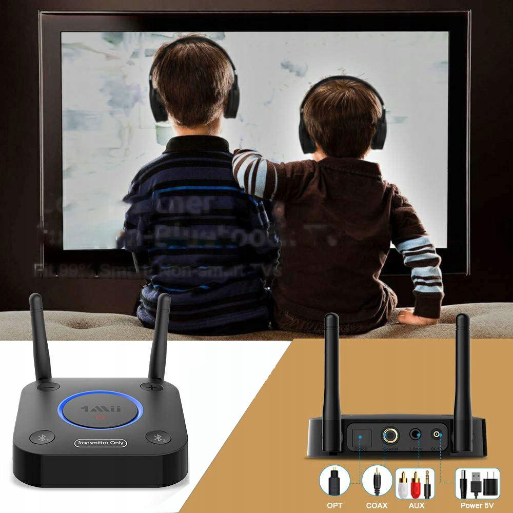 Adapter Bluetooth TV 1Mii z technologią Bluetooth 5.0 zapewnia stabilne połączenie bezprzewodowe. Dzięki temu możesz połączyć urządzenia z Bluetooth 4.2/4.0/3.0/2.0 i cieszyć się muzyką w parze z przyjacielem, używając dwóch zestawów słuchawek jednocześnie.