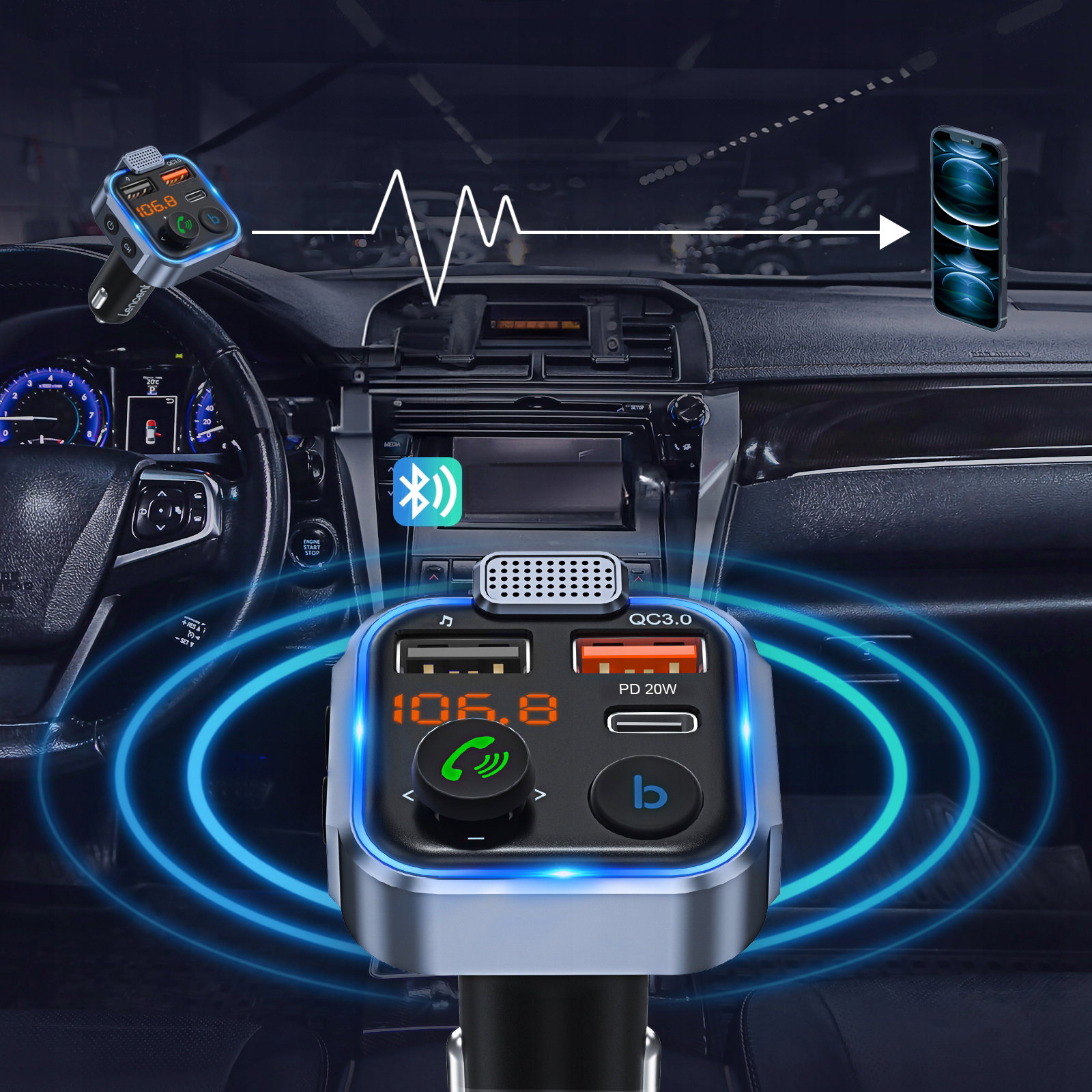 Szukasz transmitera, dzięki któremu odtworzysz w samochodzie swoją ulubioną muzykę w doskonałej jakości? Chciałbyś odbierać i wykonywać połączenia bez potrzeby trzymania telefonu? Potrzebujesz naładować urządzenie mobilne podczas jazdy?Dzięki temu urządzeniu to wszystko jest możliwe!