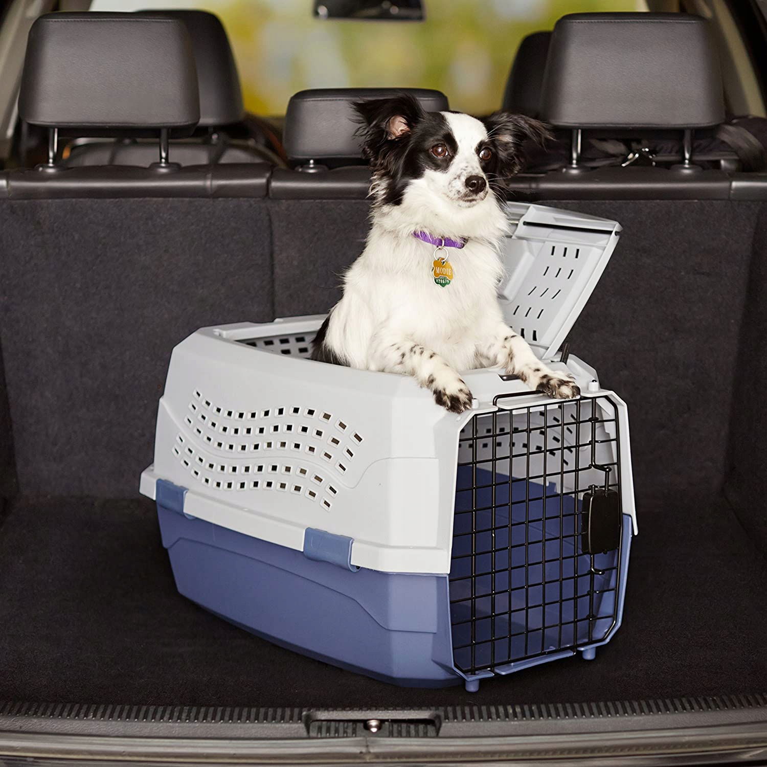 Transporter dla psa Amazon Basics, model dwudrzwiowy - bezpieczny, wentylowany, solidny