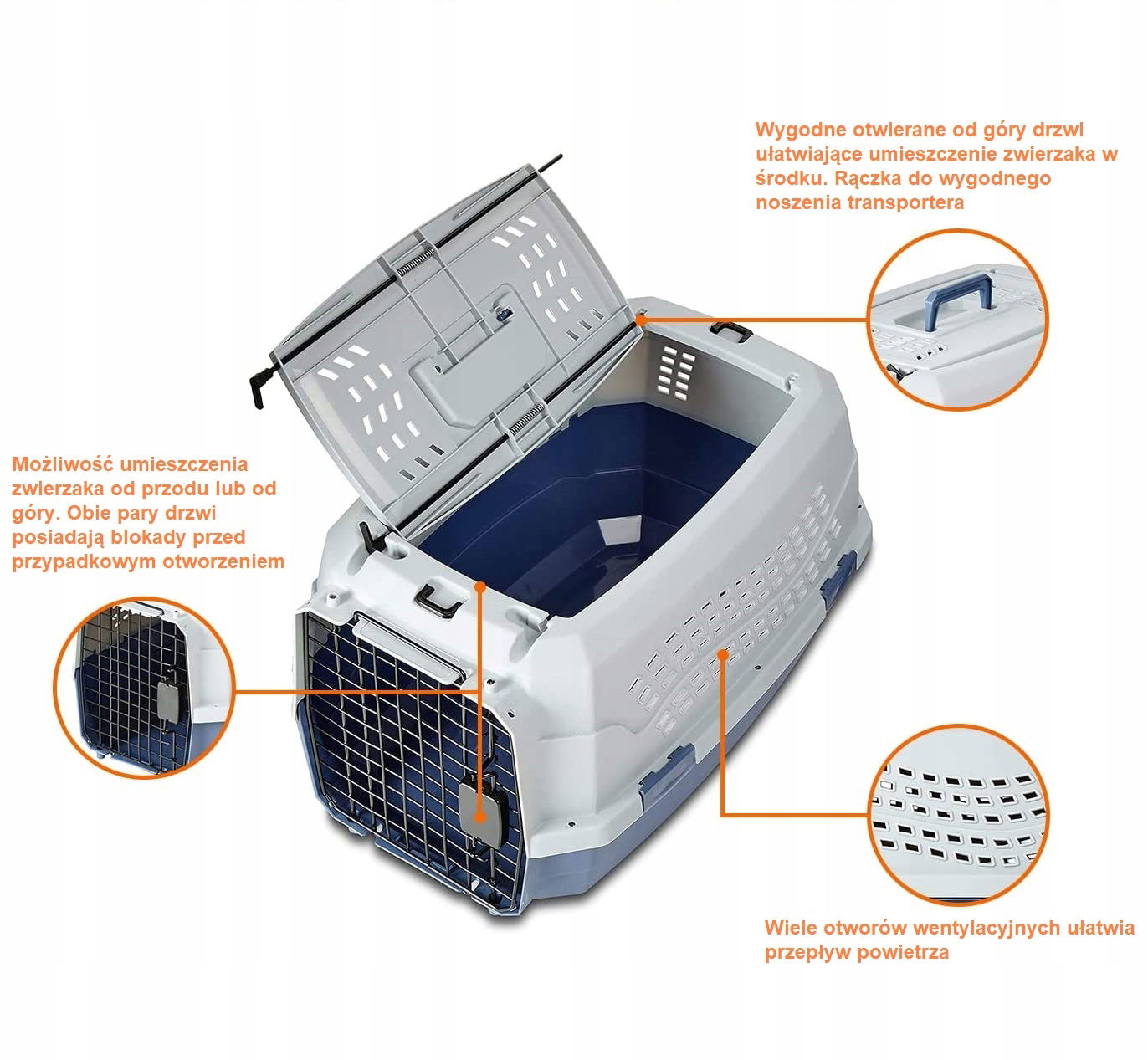 - Dwudrzwiowy design – zapewnia wygodne ładowanie zwierząt z przodu i z góry.