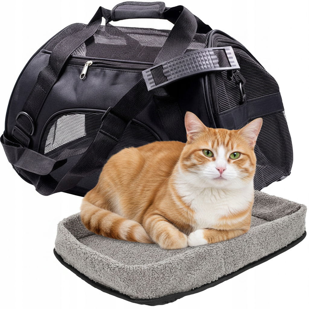 TRANSPORTER DLA PSÓW KOTÓW ZWIERZĄT SKŁADANY TORBA TRANSPORTOWA Z MATĄ L
