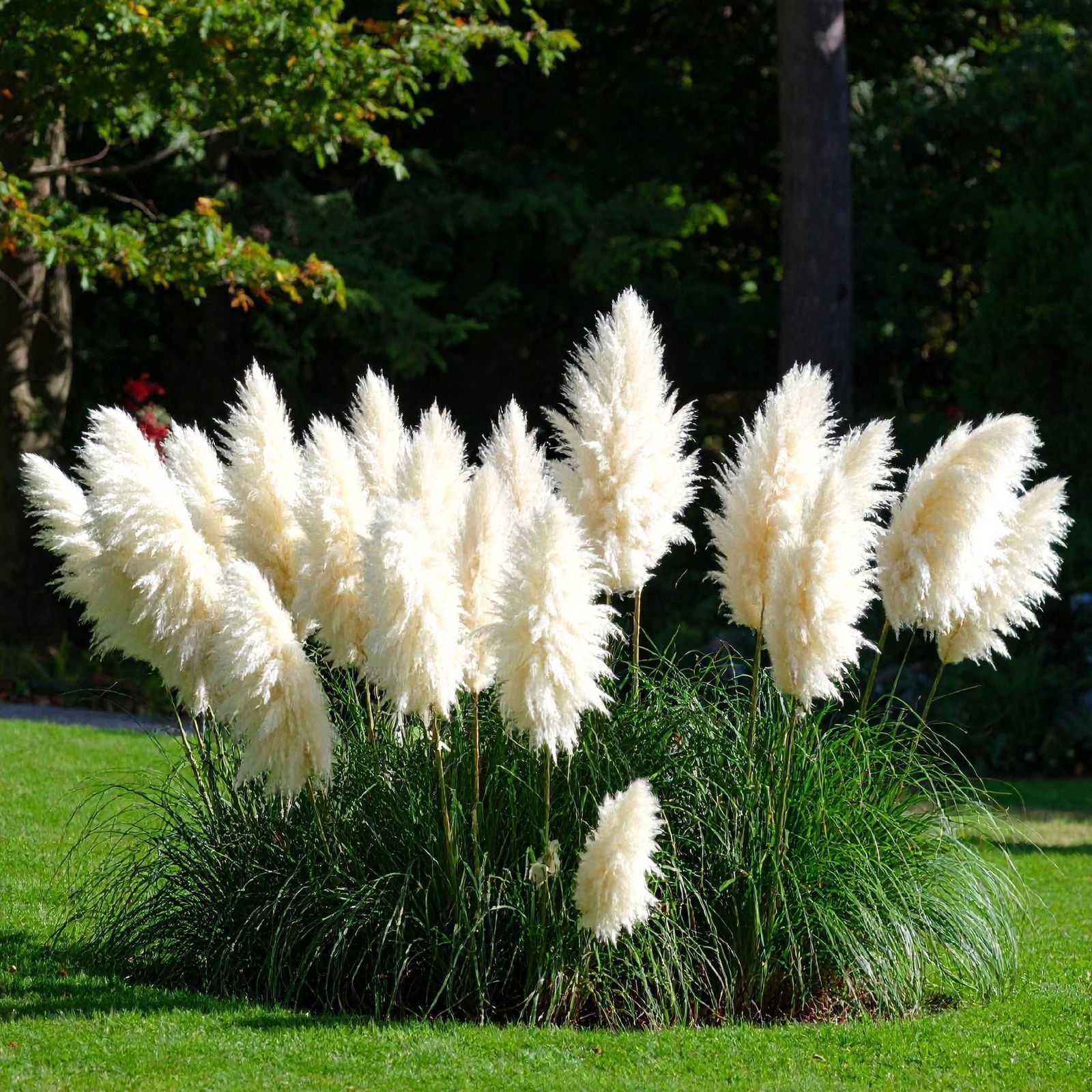 To niezwykle efektowna odmiana trawy pampasowej, zachwycająca dużymi, puszystymi kwiatostanami w kolorze kremowobiałym. Wprowadza do ogrodu imponujący, architektoniczny akcent, przyciąga wzrok lekkością formy i doskonale prezentuje się zarówno jako soliter, jak i w grupach roślin ozdobnych.