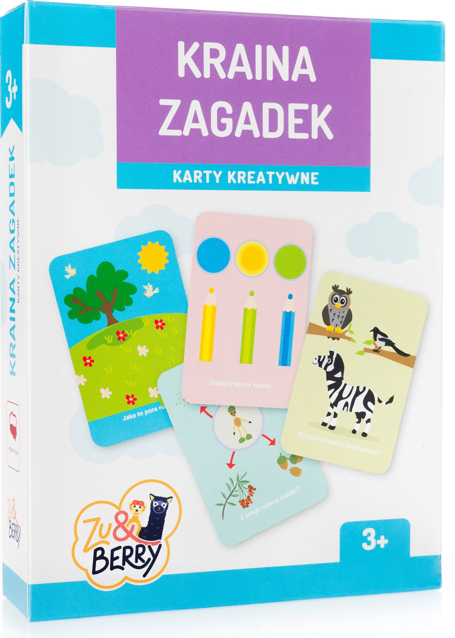 Zagadki wzbogacają dziecięcy słownik, a także rozwijają inteligencje, myślenie przyczynowo skutkowe oraz kreatywność. Karty Kraina zagadek są polecane do zabawy dziecka z rodzicem od 3 roku życia oraz rekomendowane do pracy z dziećmi: psychologom, pedagogom, terapeutom i logopedom.