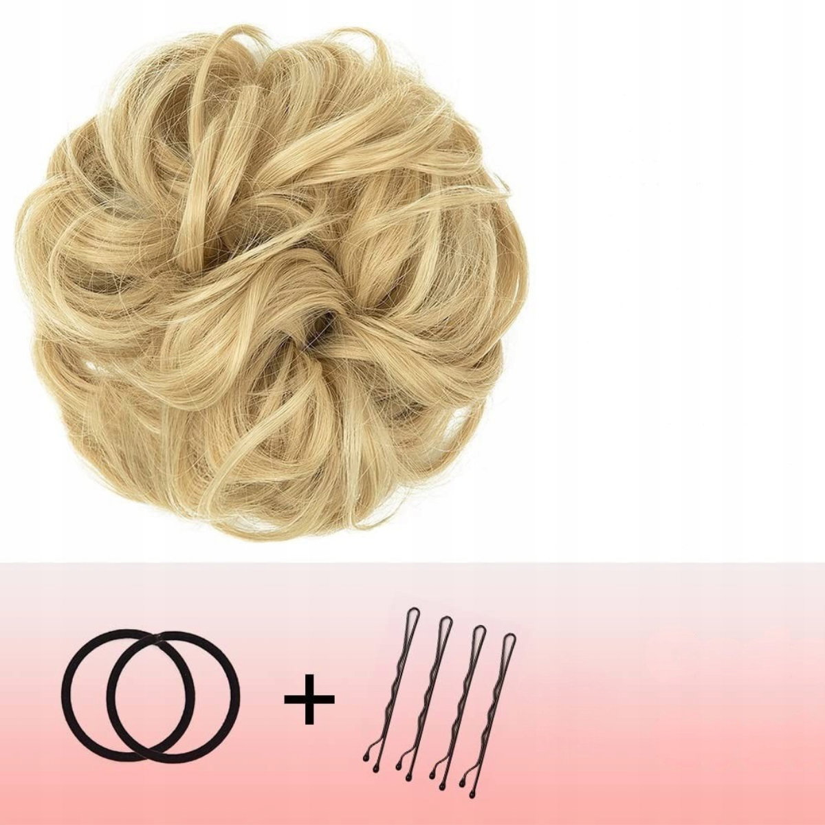 JJstar Treska do włosów kok, duże, kręcone, falowane, naturalne sztuczne włosy do koka dla kobiet i dziewcząt, naturalny blond