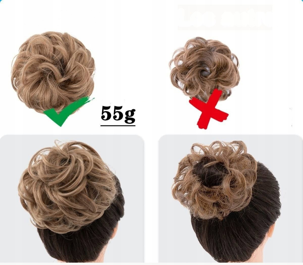 - Łatwe zakładanie: założenie koka zajmuje zaledwie kilka sekund – wystarczy owinąć go wokół kucyka lub upięcia, aby uzyskać natychmiastowy efekt. To doskonała opcja dla osób, które chcą szybko przygotować się do wyjścia i cieszyć się perfekcyjnym wyglądem.