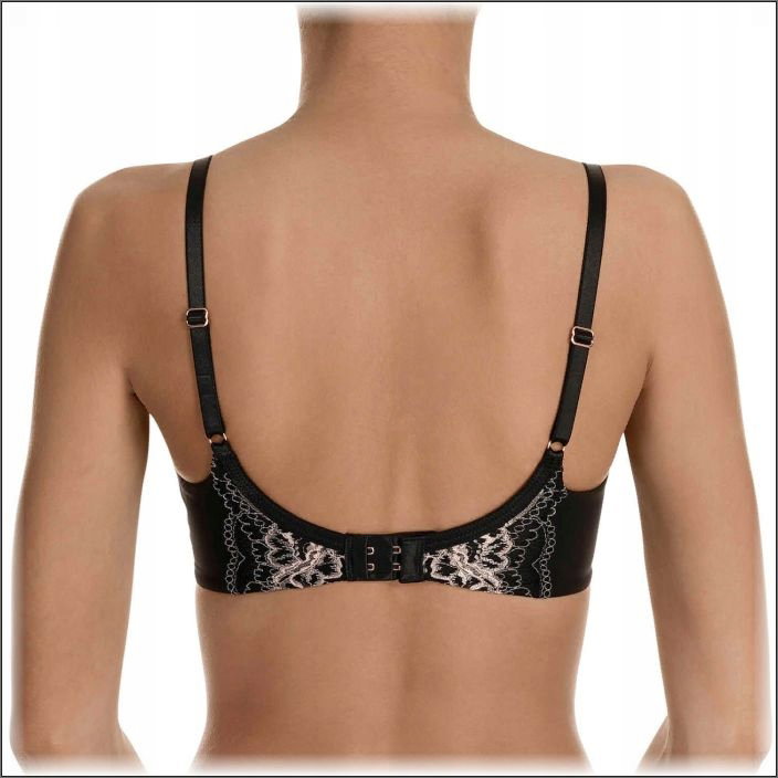 - zdobione, wychodzące z miseczek ramiączka z satynowym połyskiem, regulowane z tyłu dla indywidualnego dopasowania,