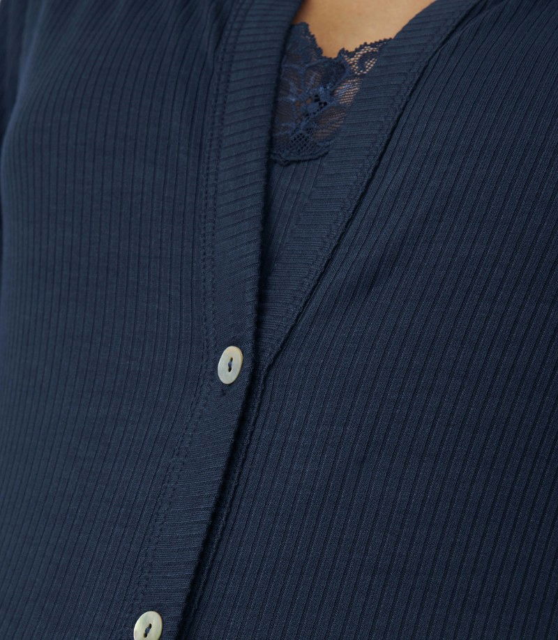 Jeden kardigan wiele zastosowań. Możesz nosić go według uznania jako sukienkę, sweter, a nawet szlafrok. Wygodny krój i przyjemna w dotyku prążkowana wiskoza zadbają o Twój komfort. Wysokiej jakości naturalna tkanina znajomicie odprowadza wilgoć, dzięki czemu zapewni Ci komfort przez cały rok nawet podczas gorących letnich nocy.