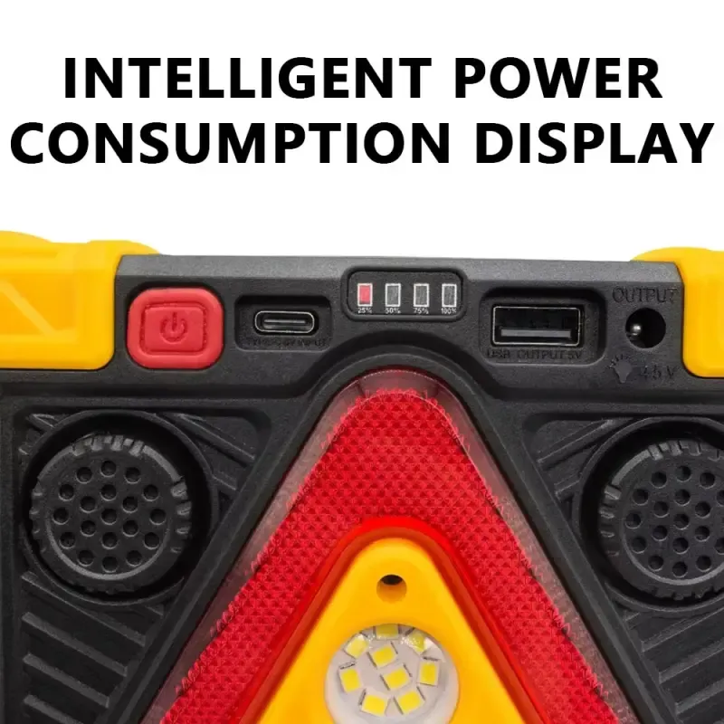 Wielofunkcyjny trójkąt ostrzegawczy LED z funkcją lampy roboczej. Służy do sygnalizacji awarii pojazdu na drodze oraz jako przenośne źródło światła. Urządzenie posiada diody LED, funkcję powerbanku do ładowania innych urządzeń (np. telefonu) ładowanie przez USB lub panel słoneczny.