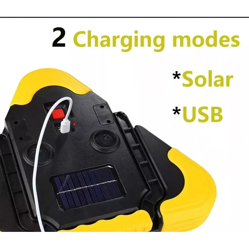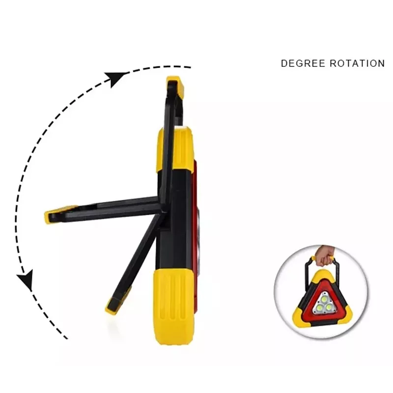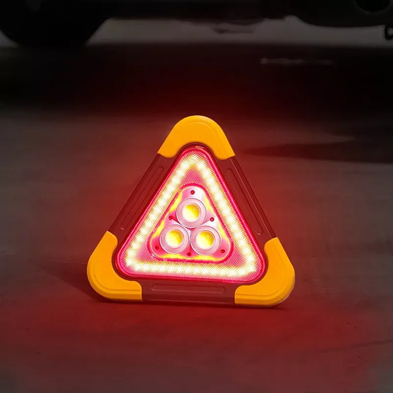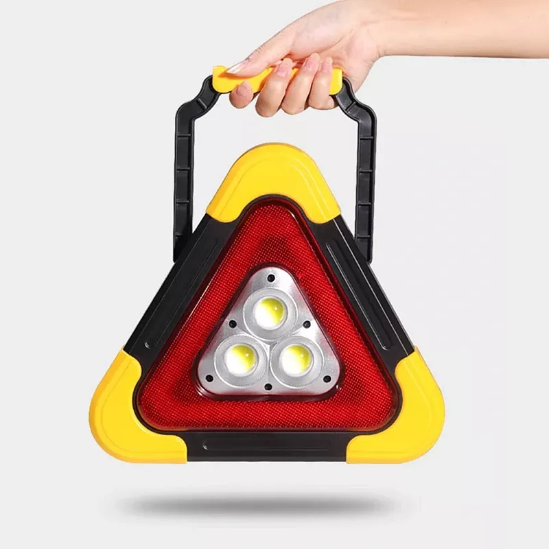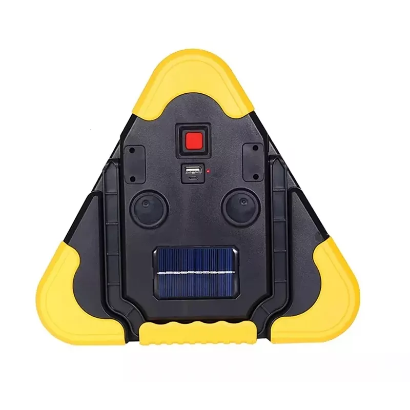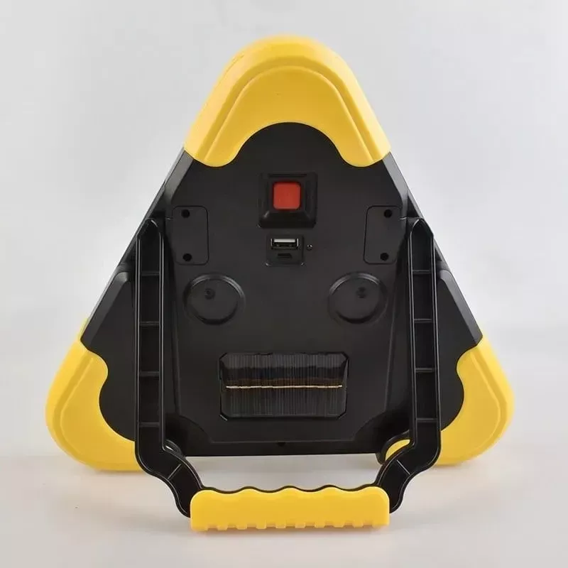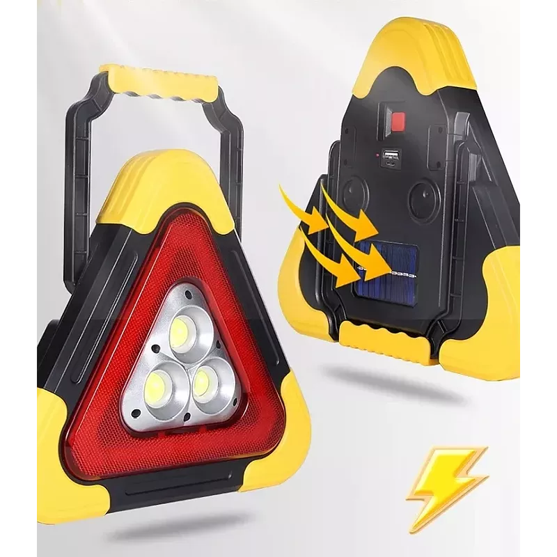 Lampa ostrzegawcza trójkąt led oparty na technologii led cob. Kolor światła biały zimny. Lampa posiada 5 trybów światła, w tym tryby pełna moc (3 godziny), połowa mocy (6 godzin), Ciągłe świecenie trójkąta (14 godzin), migotanie lub s.o.s (18 Godzin). Składana podpórka ma 6 pozycji blokujących i może być używana do ręcznego przenoszenia lub zawieszania. Zapewnia wyjątkową widoczność szczególnie po zmroku w przypadku sytuacji awaryjnych na poboczu drogi. Szczegóły łatwej obsługi przycisku i jest zasilana przez akumulator ładowany słonecznie. Cechy produktu: