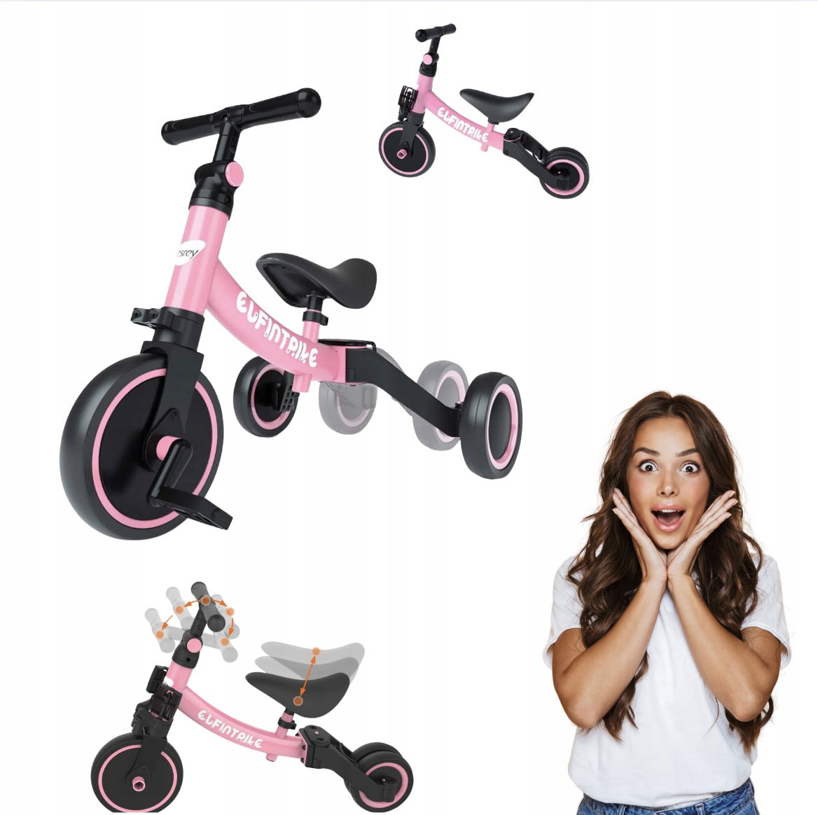 ✅ 5 funkcji w 1 – rowerek biegowy, trójkołowiec, jeździk i więcej w jednym