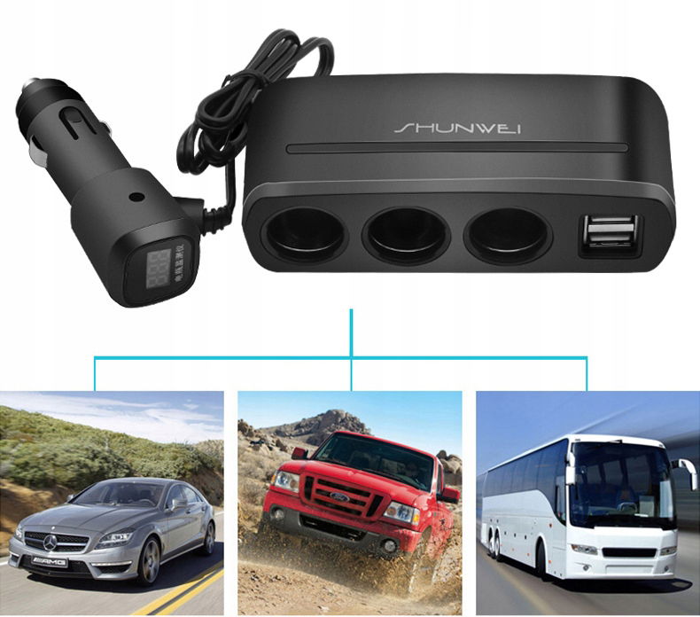 Dzięki potrójnemu rozdzielaczowi możemy jednocześnie podłączyć więcej urządzeń zasilanych z gniazda zapalniczki, takich jak kamera samochodowa, dodatkowe oświetlenie odkurzacz czy wentylator.
