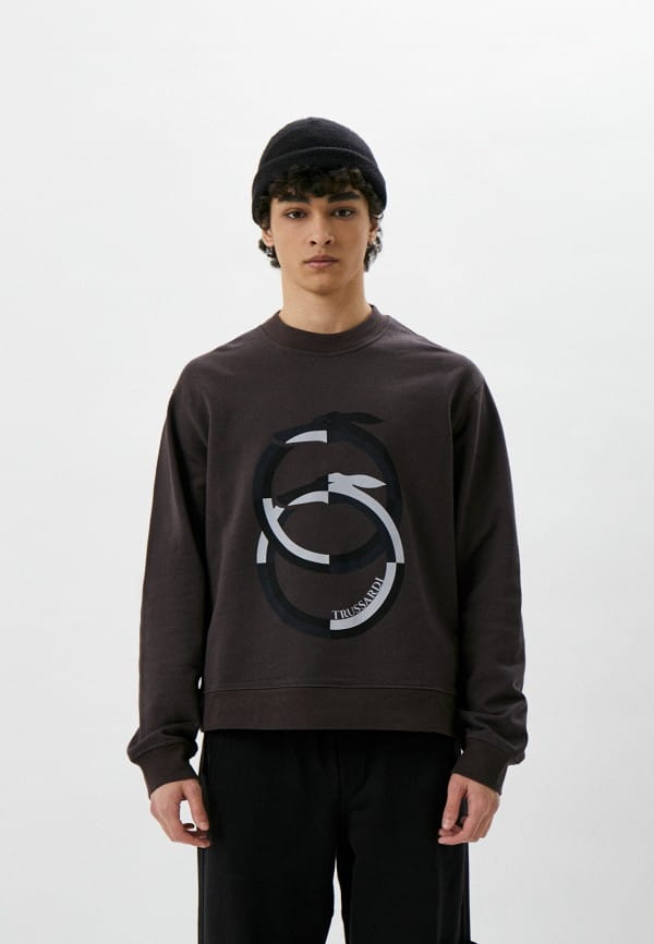 TRU TRUSSARDI Ciemnobrązowa bluza nadruk (M)