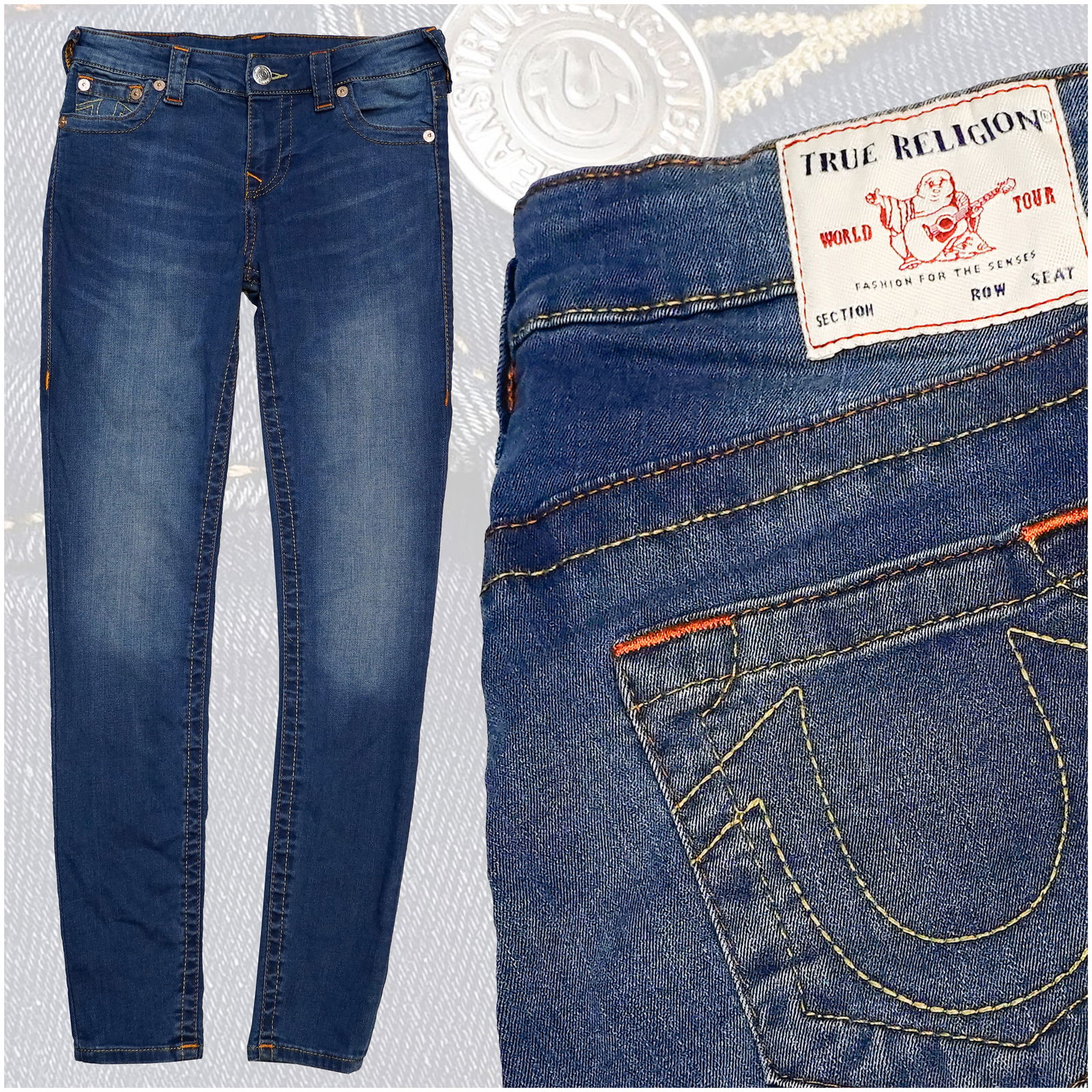 TRUE RELIGION | HALLE OM CORE Granatowe Jeansy Mid Rise Super Skinny ROZ.28