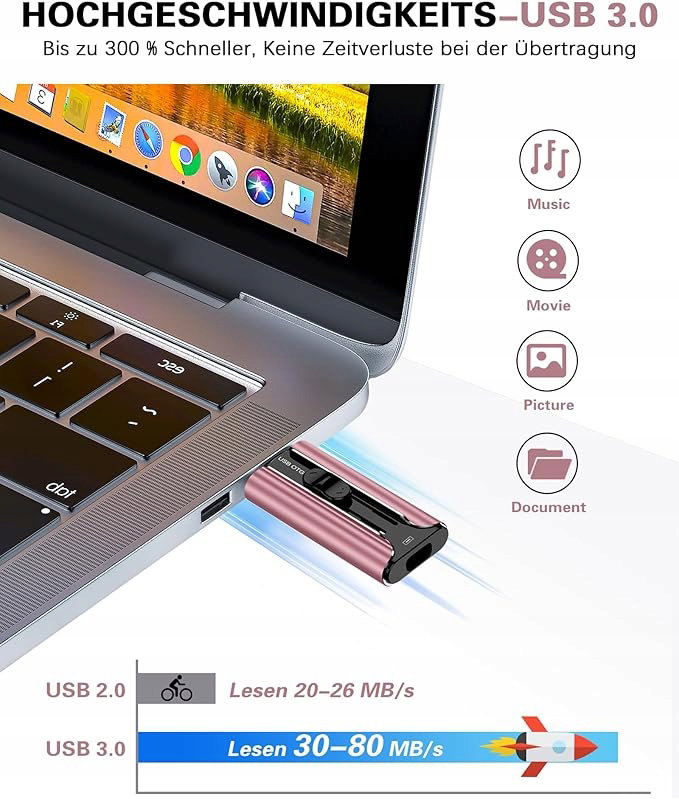 - 【Kopia zapasowa jednym kliknięciem】Napęd flash USB Plug and Play, można wykonać kopię zapasową wielu plików, takich jak filmy wideo/obrazy/dokumenty jednym kliknięciem. Pamięć USB 3.0 zapewnia prędkość odczytu do 80 MB/s i zapisu do 40 MB/s, oszczędzając więcej czasu. Jeśli zdjęcie jest podłączone do telefonu/pada/Androida itd., możesz zapisać filmy i zdjęcia bezpośrednio na dyskach flash, bez zajmowania miejsca na dysku.