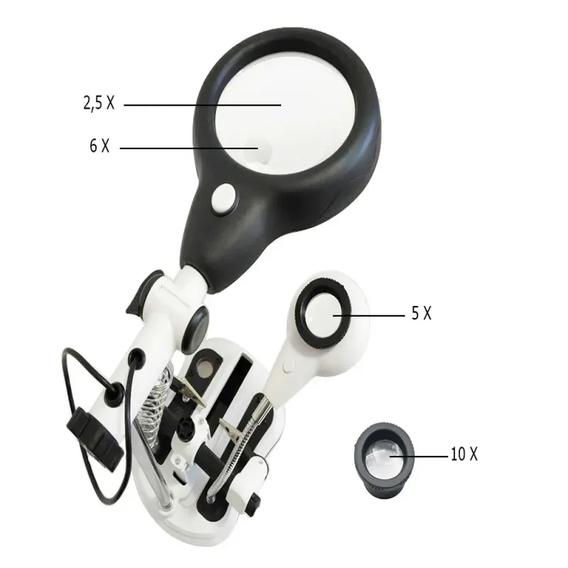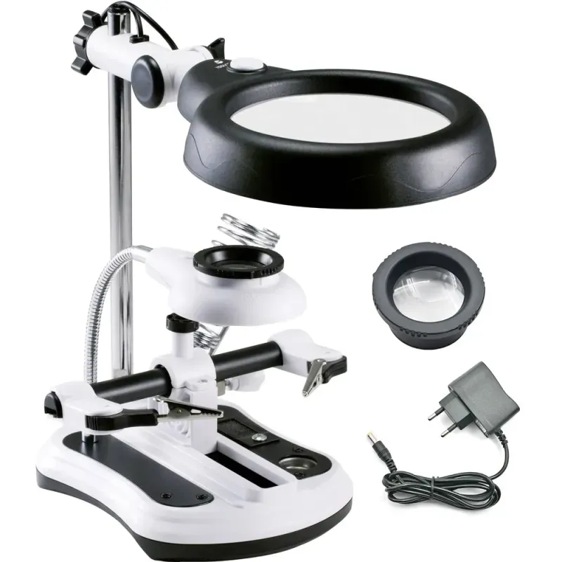 Profesjonalna lupa trzeciej ręki o powiększeniu 2,5x, 5x, 6x, 10x to idealne urządzenie dla majsterkowiczów. Trzecia ręka jest dodatkowym uchwytem niezbędnym do wszelkich prac wymagających wysokiej precyzji.