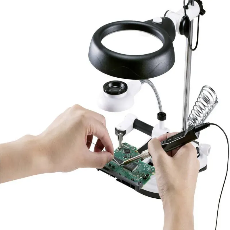 Trzecia ręka zestaw do lutowania uchwyt dwie lupy z podświetleniem