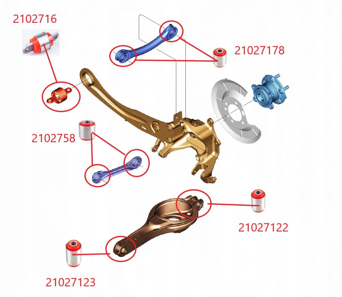 - 4szt. Tuleja wahacza tylnego, dolnego, wewnętrzna i zewnętrzna - MPBS: 2102758 (drążek prosty)