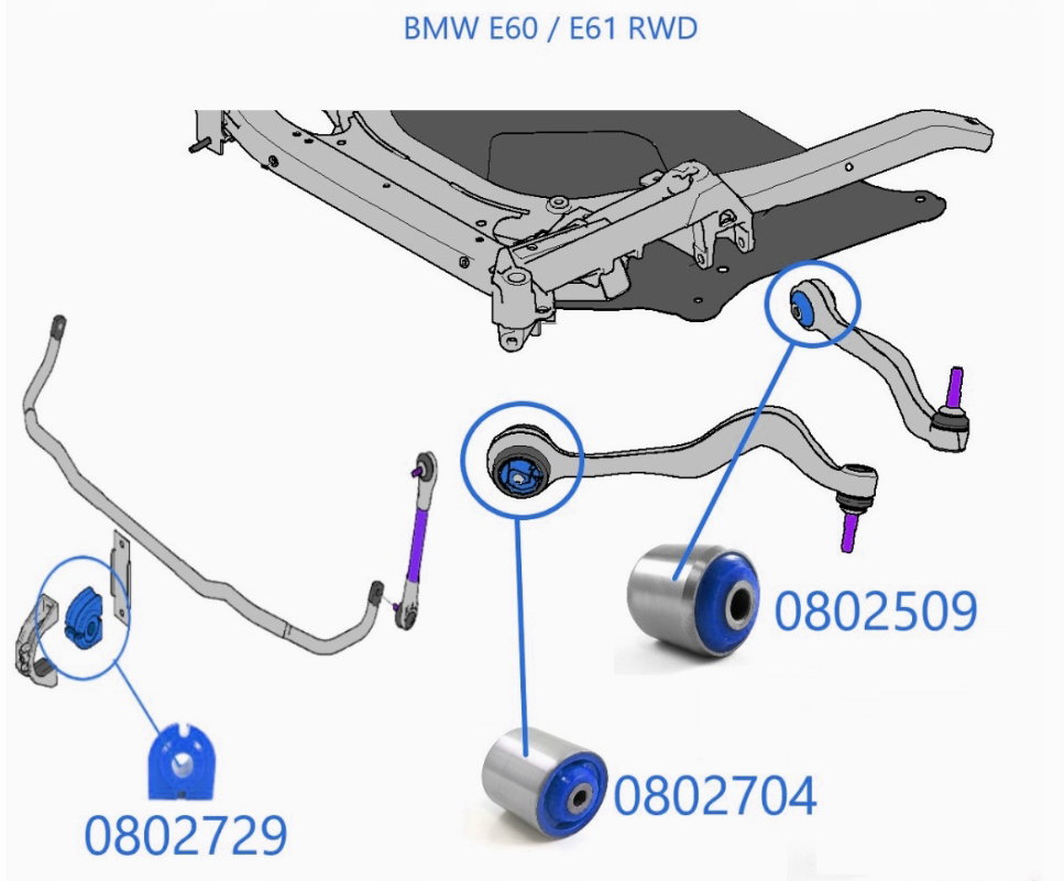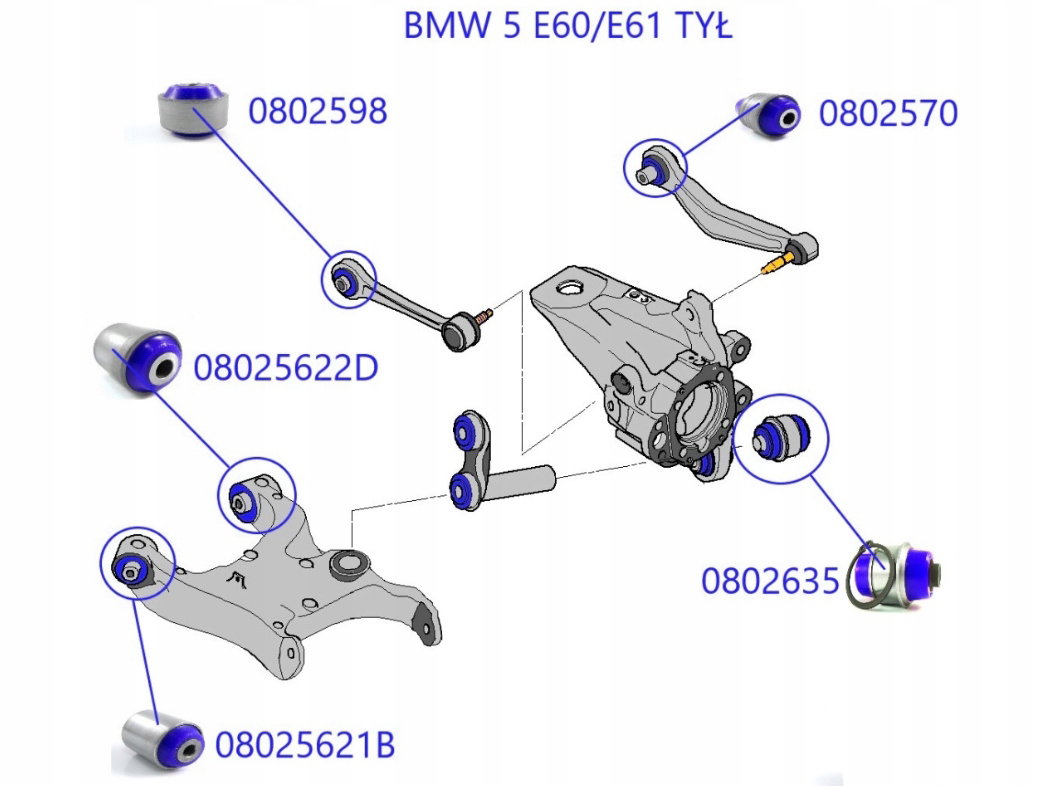Tuleje Wahaczy Komplet Zawieszenia BMW E60 E61 Poliuretan Sport 90sha Drift