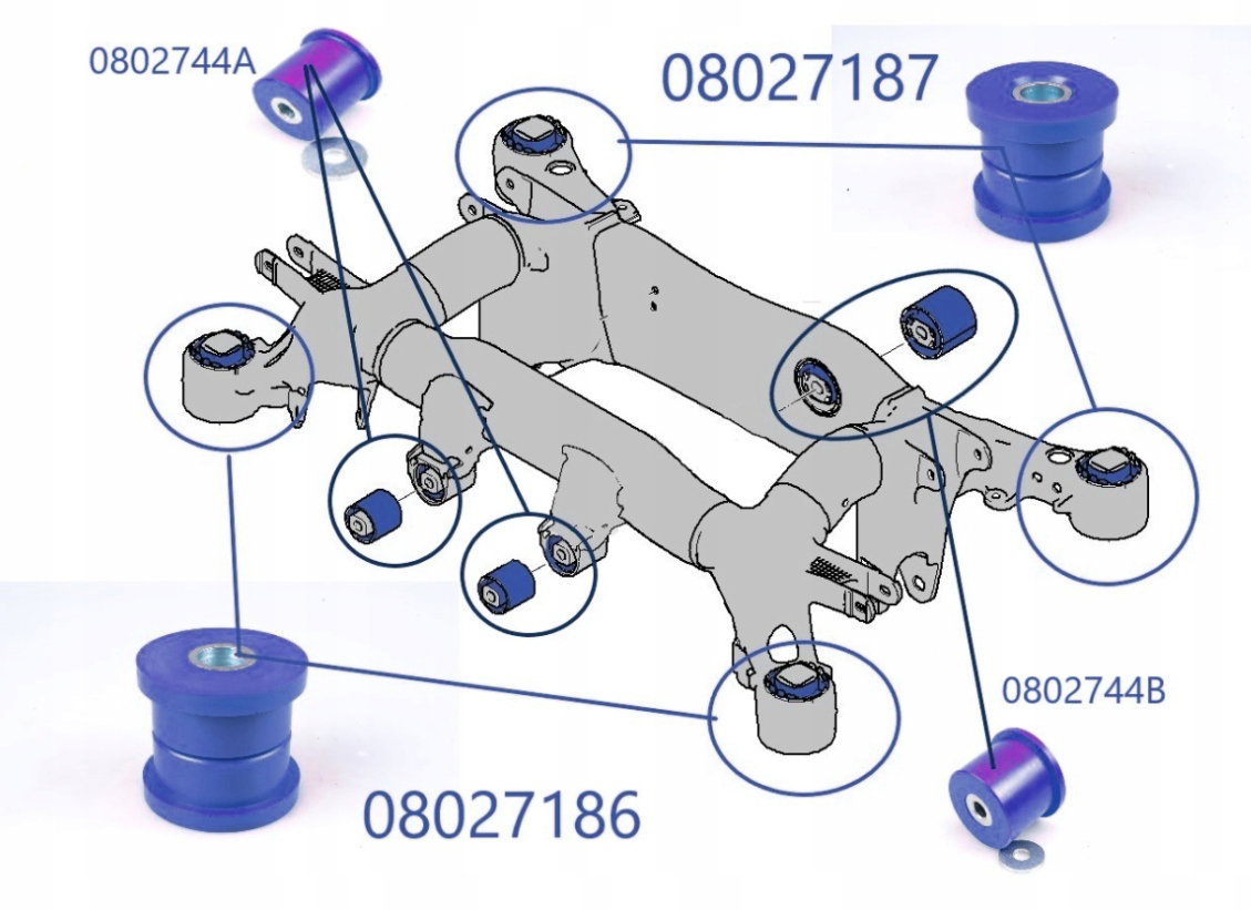 Kolor Niebieski – 90Sha na przykład, do samochodów sportowych o dużej mocy zaleca się tuleje o większej twardości , aby zapewnić większą stabilność i precyzję prowadzenia.