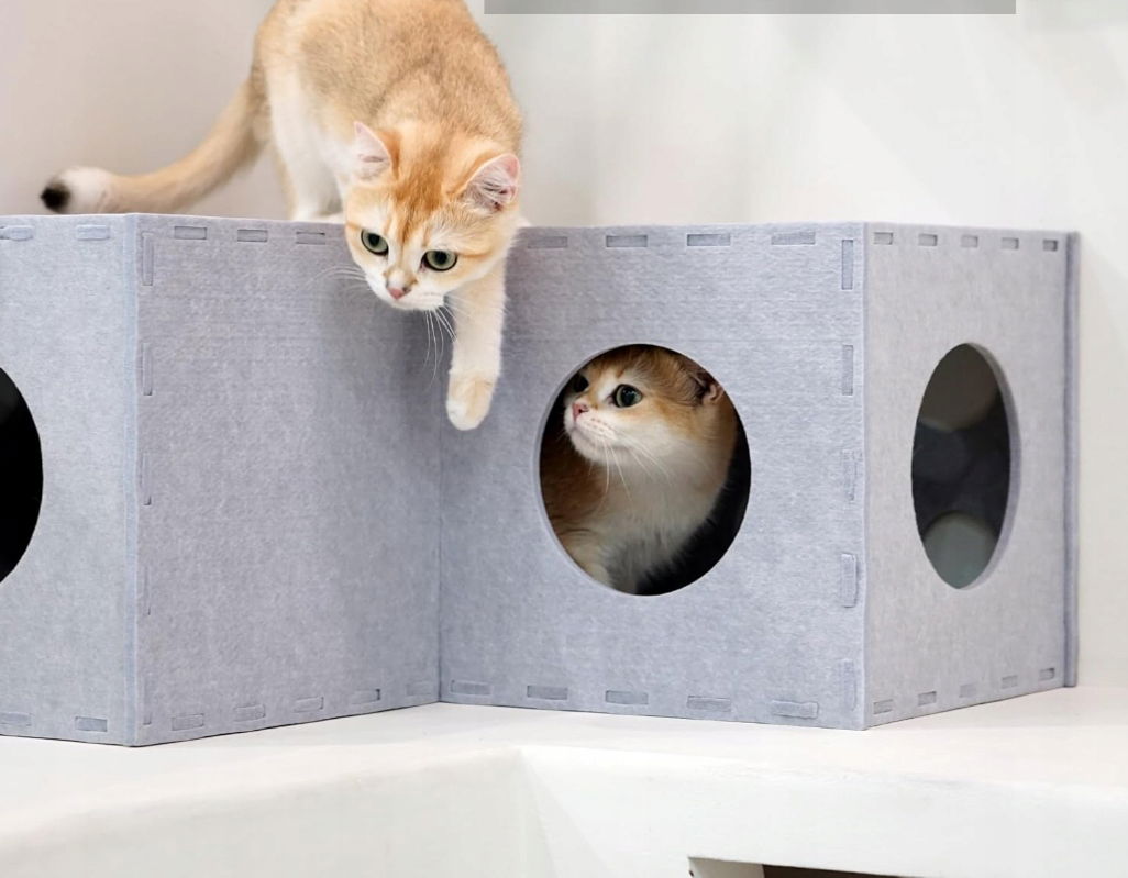 - ✴️ORYGINALNY TUNEL: Wykonany z filcu nadającego się do recyklingu i posiada pusty tunel w kształcie litery L, idealny dla kotów domowych. Zapewnia idealną kryjówkę, która zapewnia kotu aktywność i zaangażowanie fizyczne, stymulując jego naturalne instynkty.